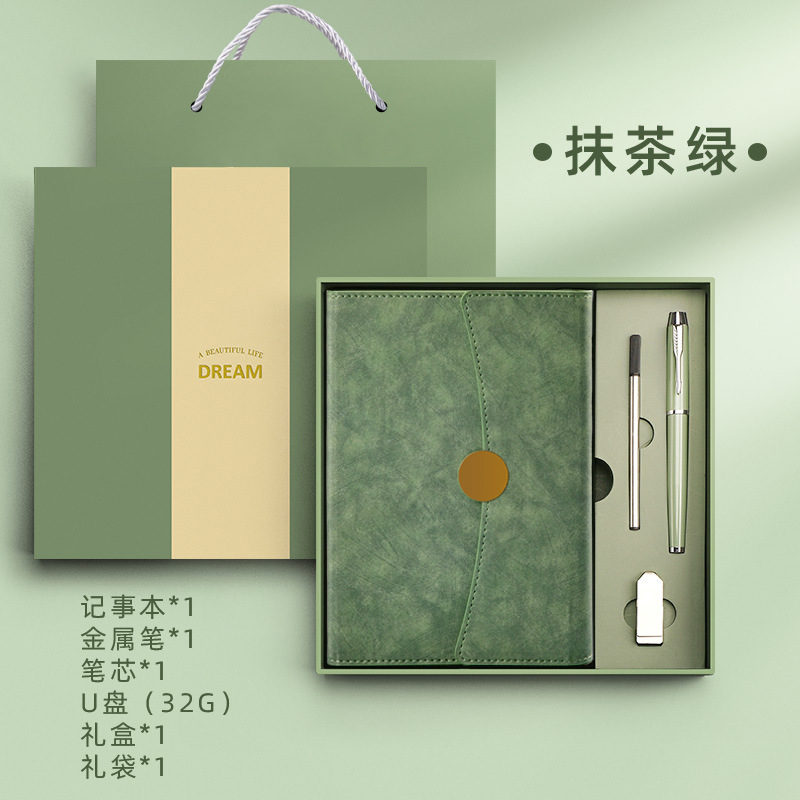 a5-matcha green-4-piece set [gift box + signature pen + refill + u disk]]