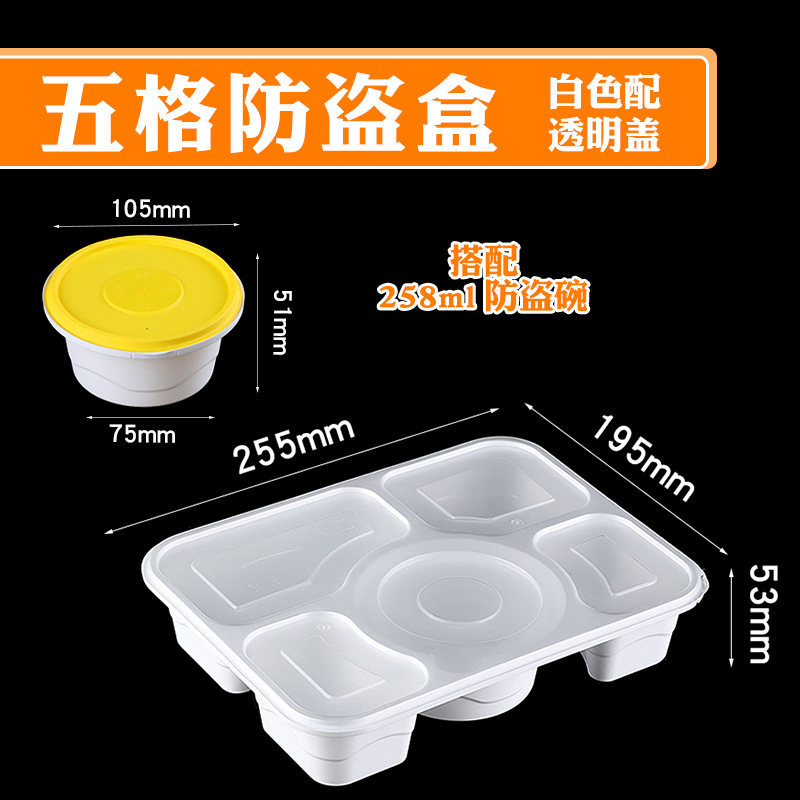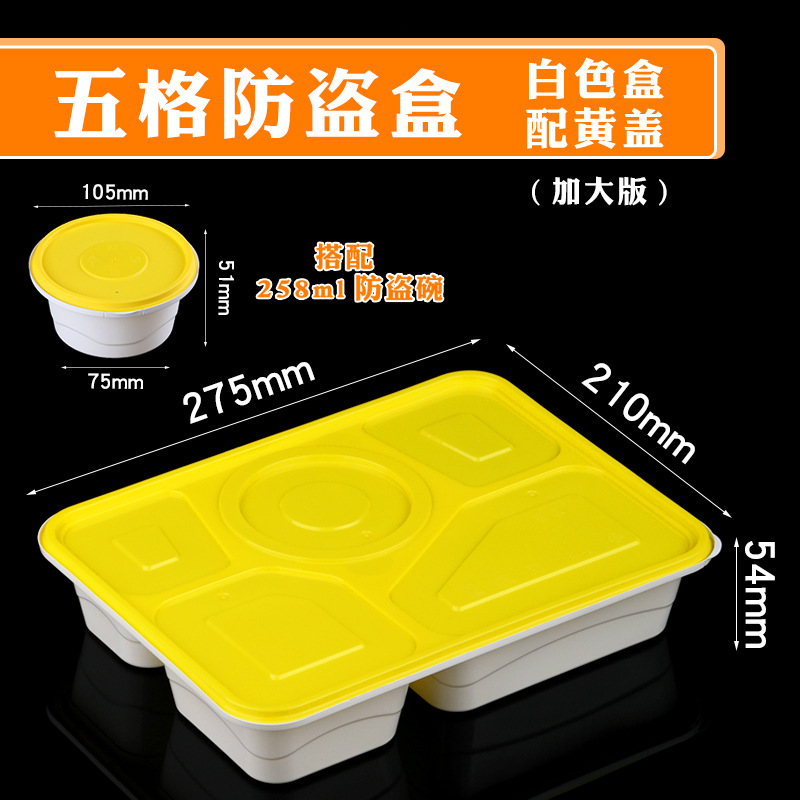five-grid anti-theft box + 258ml anti-theft bowl (100 sets) white bowl yellow cover