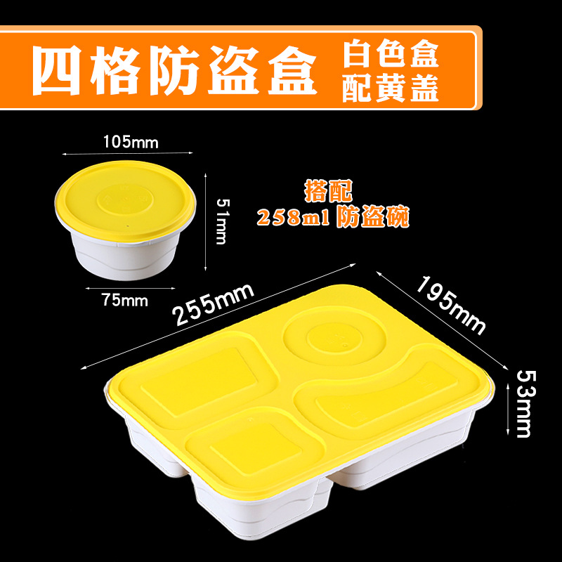 four-grid anti-theft box + 258ml anti-theft bowl (100 sets) white bowl yellow cover