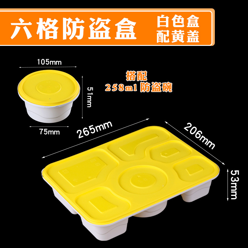 six-grid anti-theft box + 258ml anti-theft bowl (100 sets) white bowl yellow cover