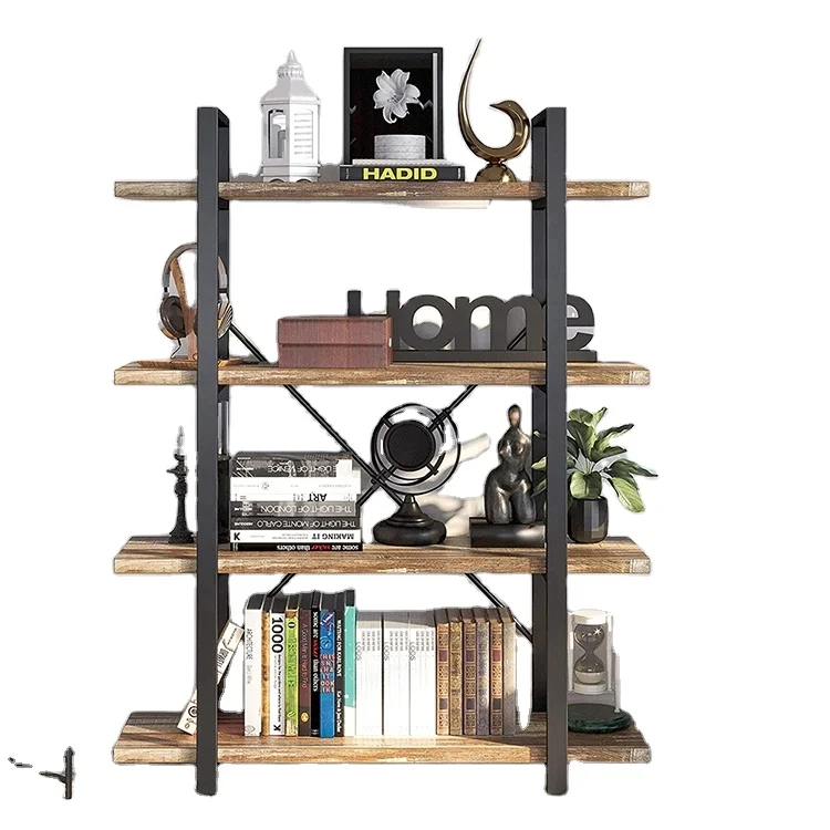 Factory Price 4 Layers Multifunctional Metal Frame Wooden Shelf Storage Bookcase