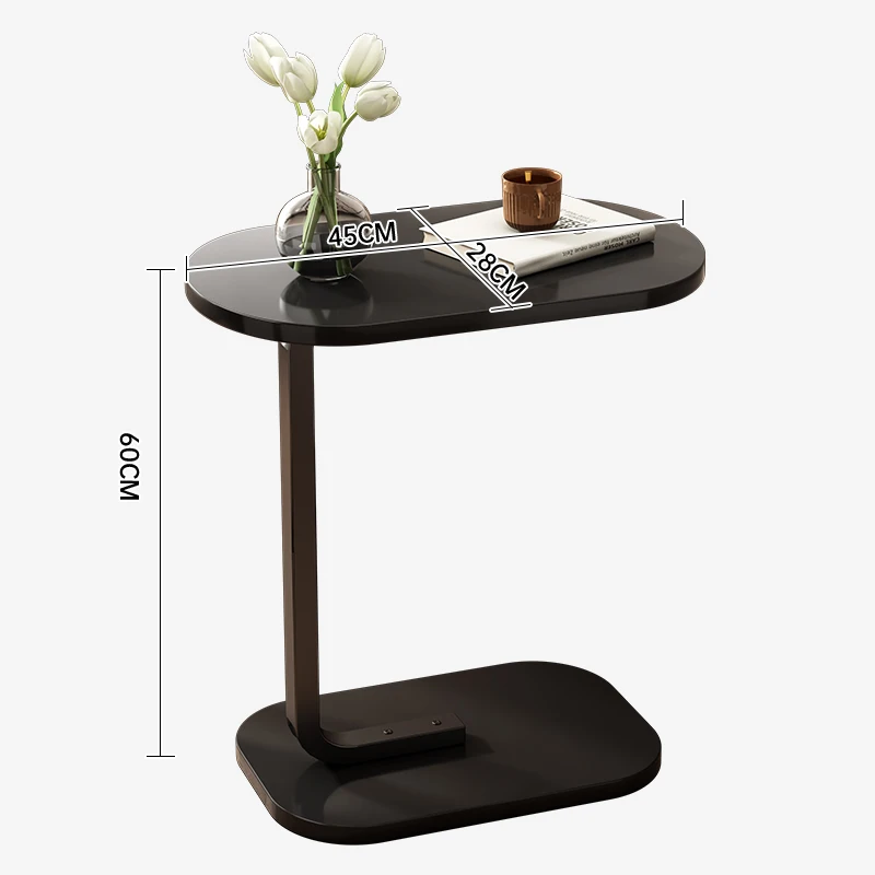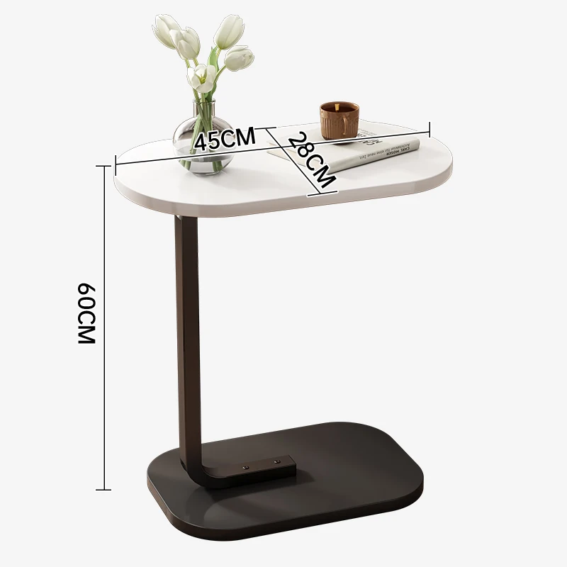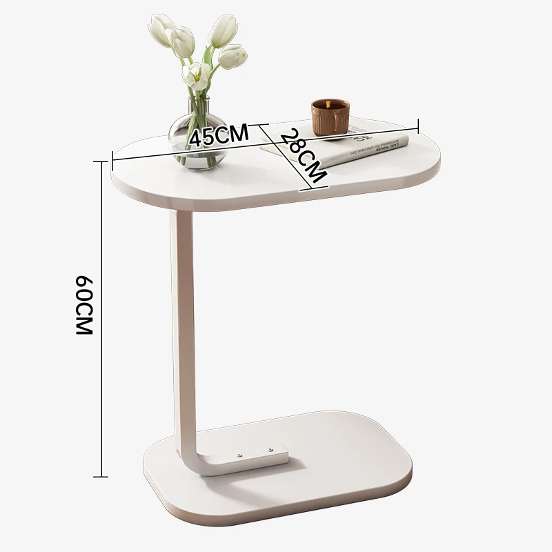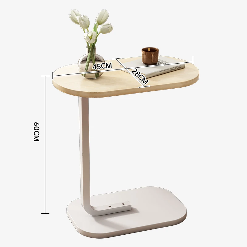 1.Sturdy Iron Bracket: Crafted with a robust iron bracket, this end table guarantees stability and long-lasting durability, ensuring your items are safe and secure. 2.Innovative C-Shaped Design: The unique C-shaped design adds a touch of novelty to your space. It fits snugly against your furniture, providing a stylish and functional addition to any room. 3.Elegant Density Board Blister Desktop: The sleek density board blister desktop not only adds aesthetic charm but also offers easy maintenance. 4.Safety-Conscious Curved Desktop: With its carefully curved desktop, this table prioritizes safety. 5.Flexible Utilization and Convenience: The ingenious design includes flexible table legs that can be inserted beneath your sofa or bed, optimizing space utilization.