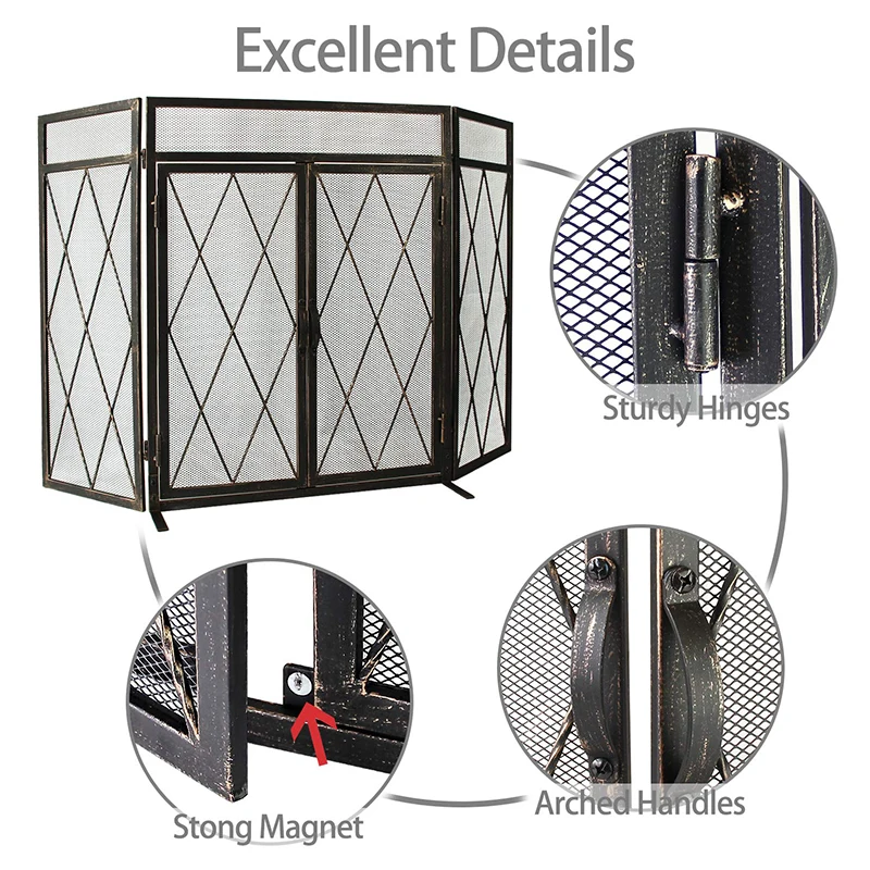 ● Three-panel design, can flexibly match fireplaces of different sizes and shapes
