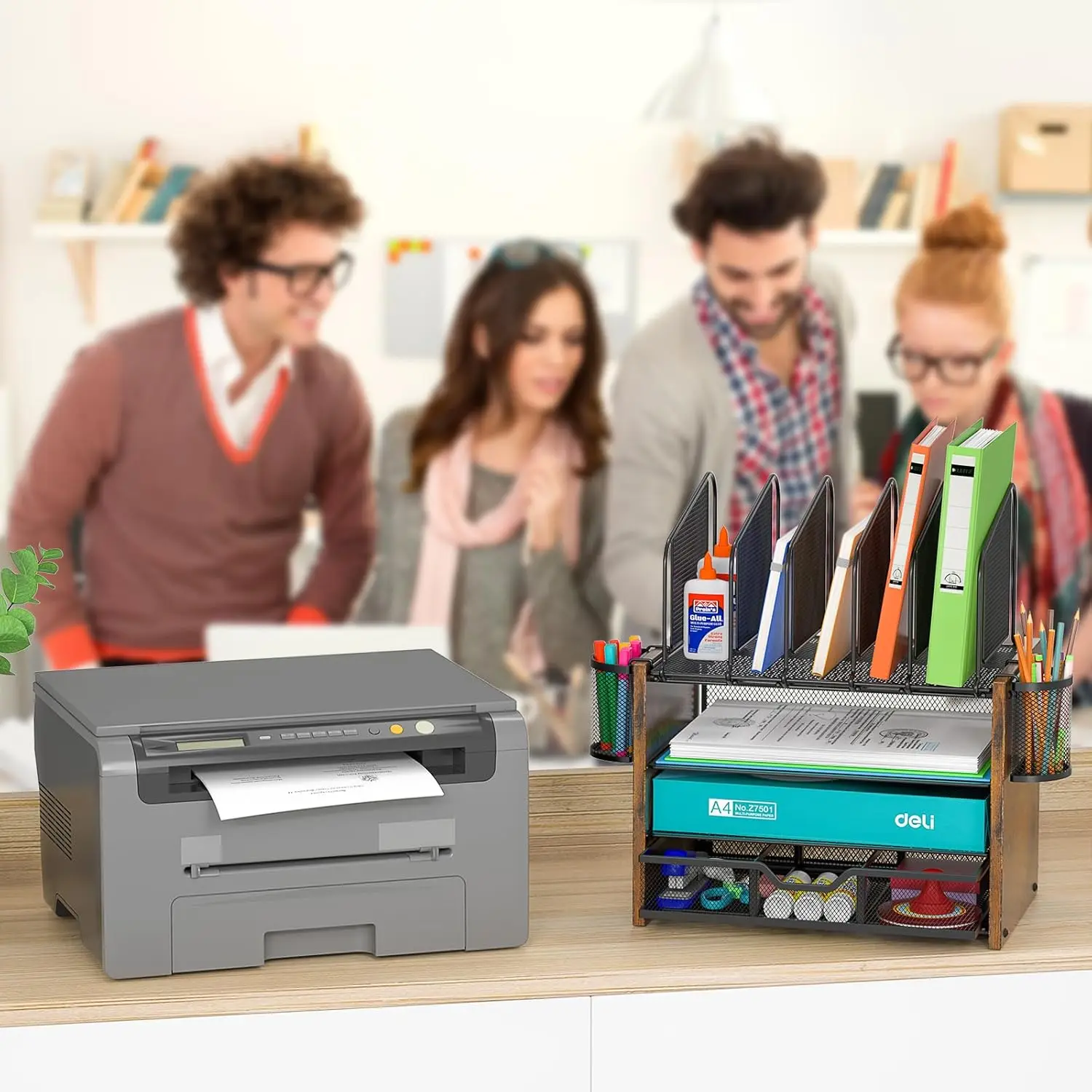 Product name | Wooden 4-Tier Mesh Desk Organizer desk File Organizer with 5 Vertical File Holders and 2 Pen Holders for Home Office |