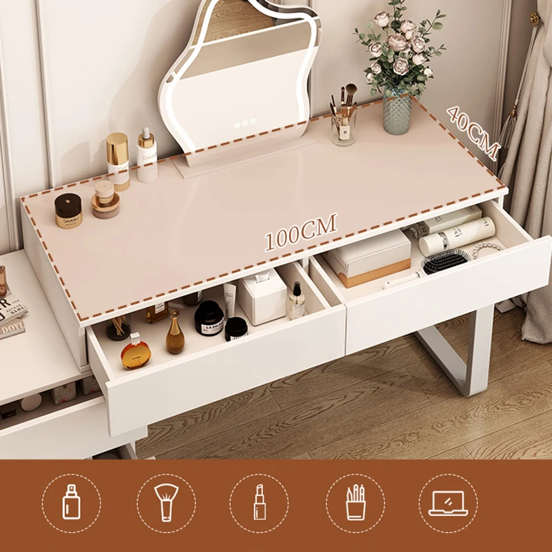【Large Capacity Storage】The vanity set is really functional and practical to organize your makeup products. Featuring drawers and cabinet, the vanity table set provides plenty of space for storing cosmetics, nail polish, perfume, eyeliner and more. you can make the most of it.