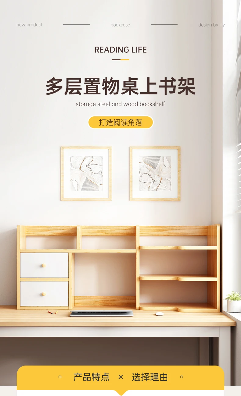 2023 new design Desk multi-layer storage bookshelf modular bookcase computer table with bookshelf