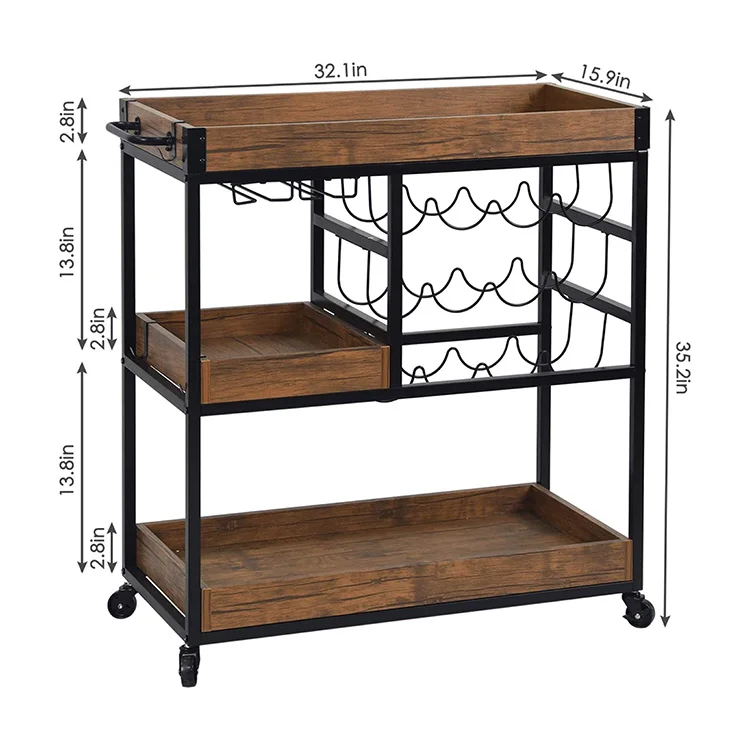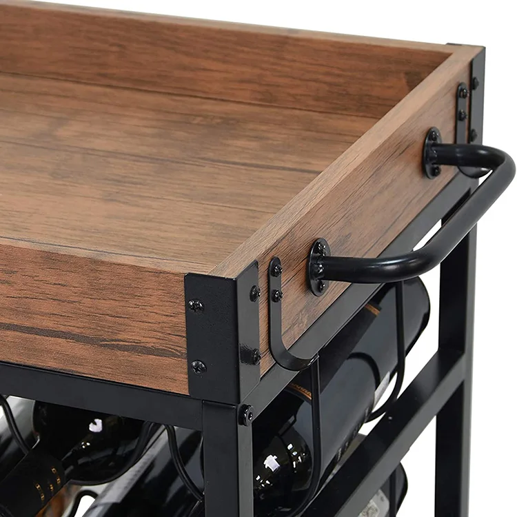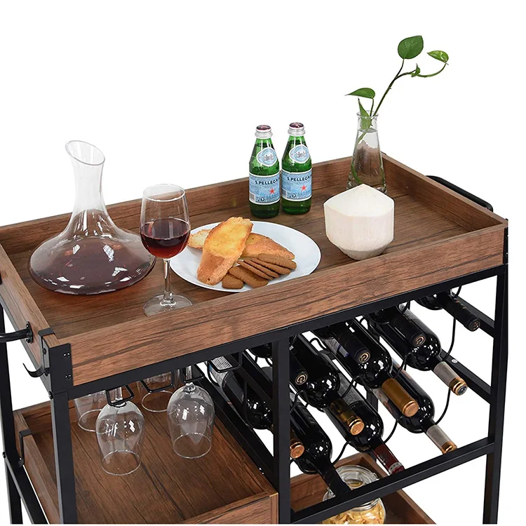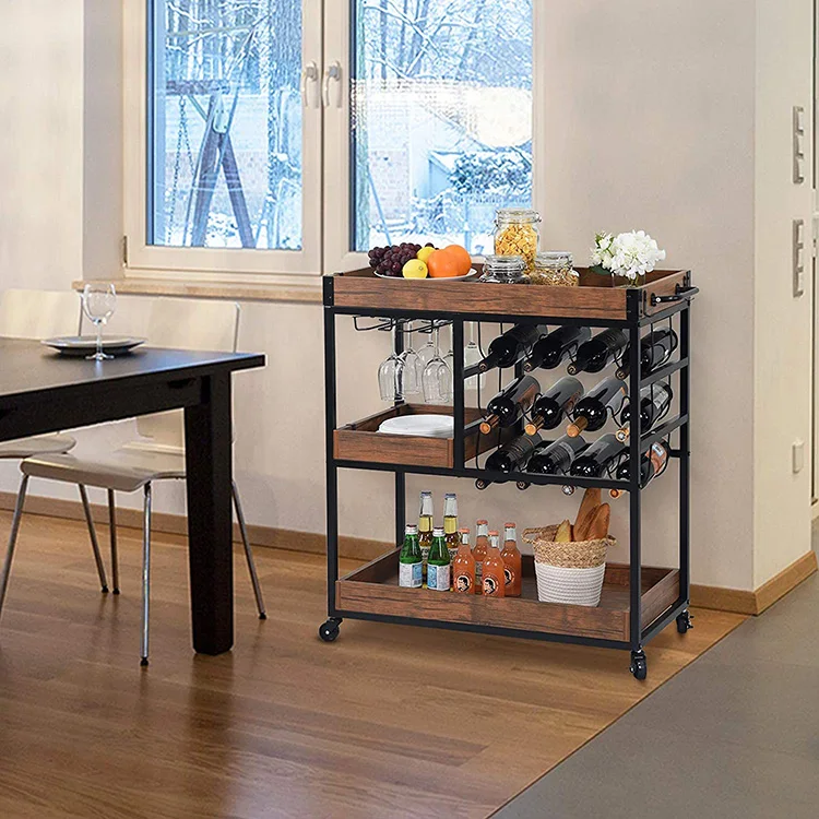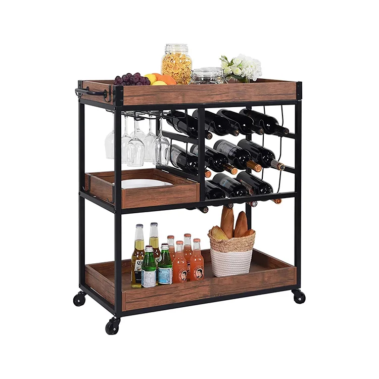 Free Stand Wine Food Fruit Vegetable Wheel Wooden Kitchen Display Shelf, Display Cart With Shelf