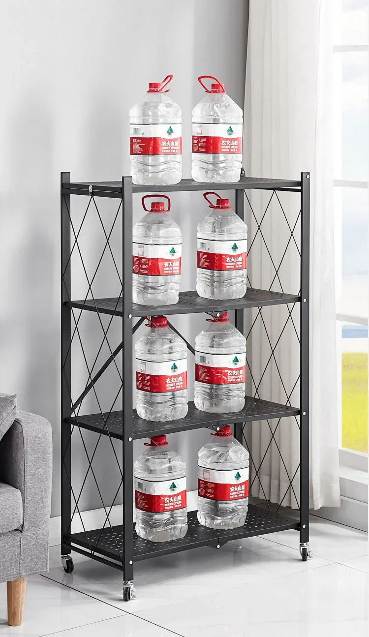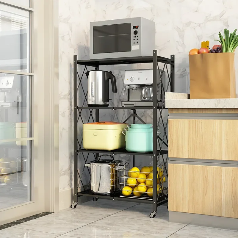 Kitchen folding black shelf steel storage rack mobile folding rack 5-layer folding household storage rack
