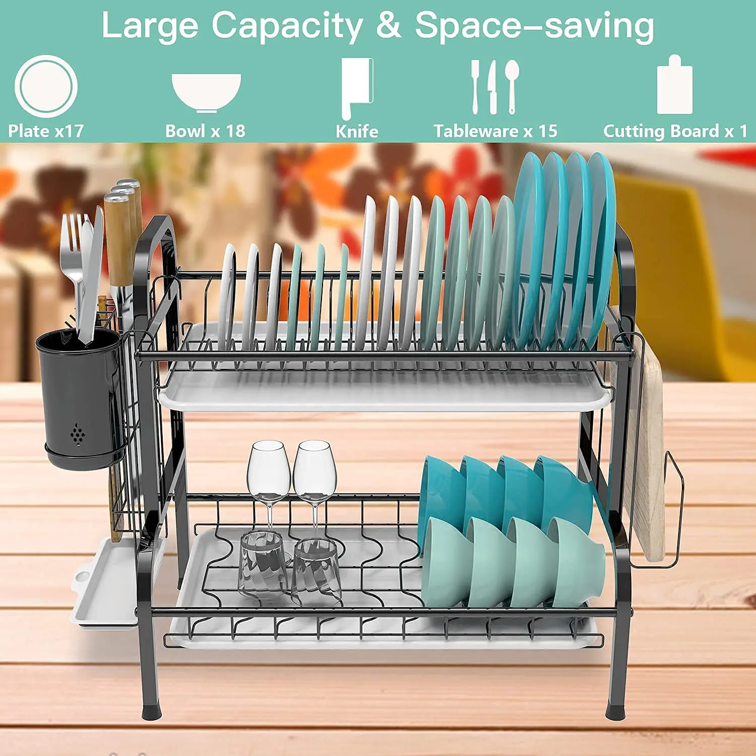 Product name | Black Rustproof Drainboard Set Plate Drying Kitchen 2 Tier Dish Drying Drainer Rack Stainless Steel |