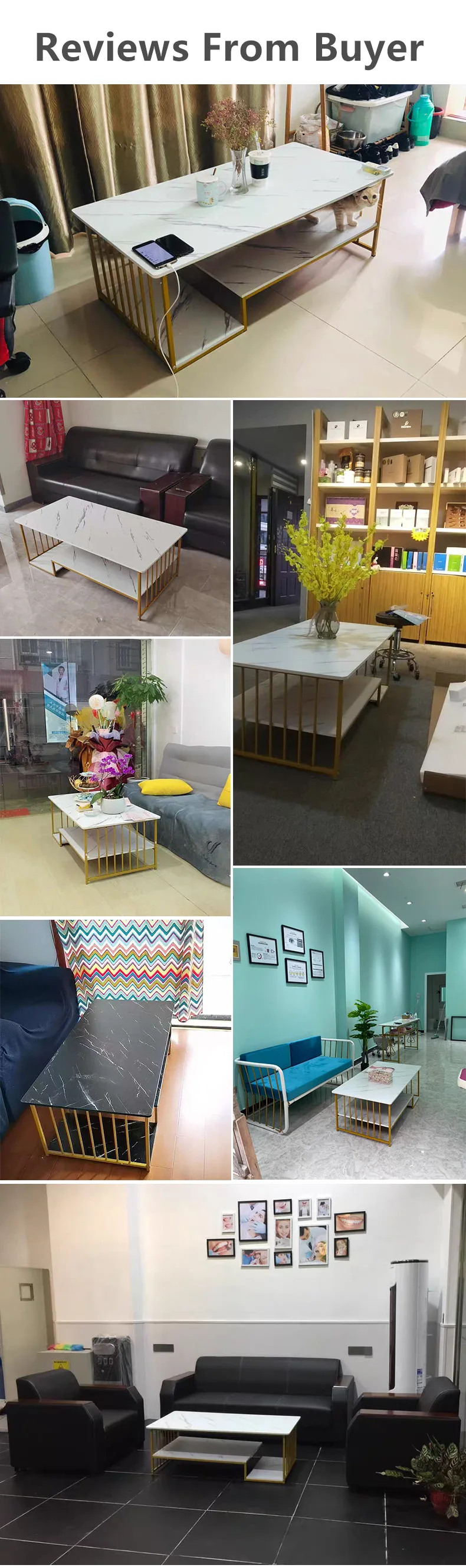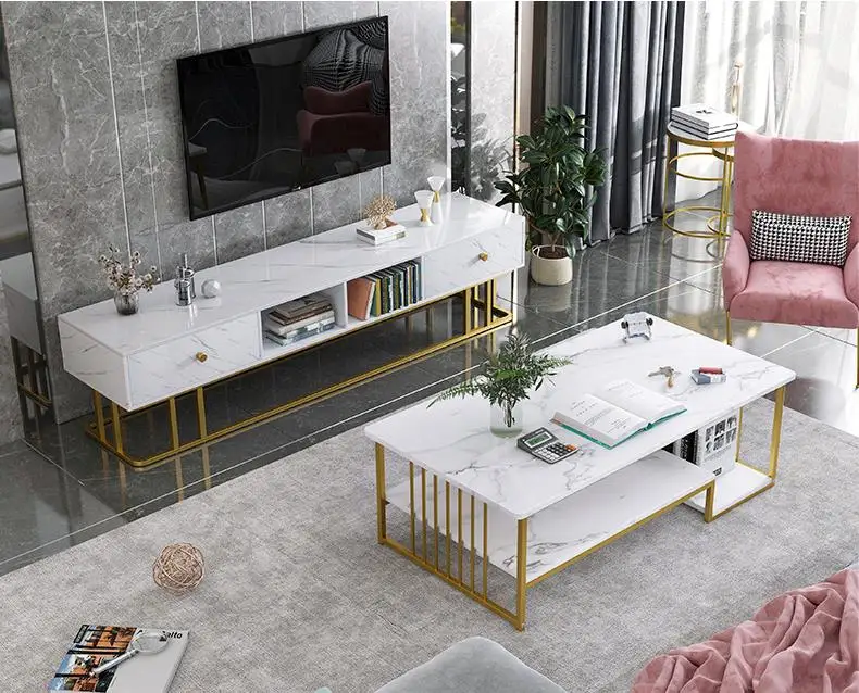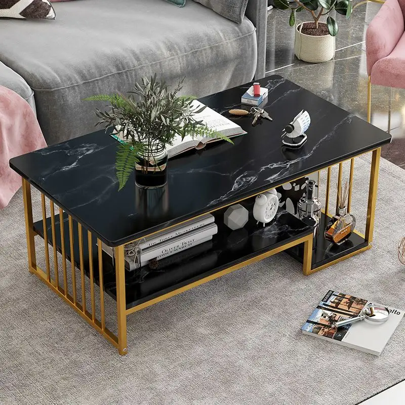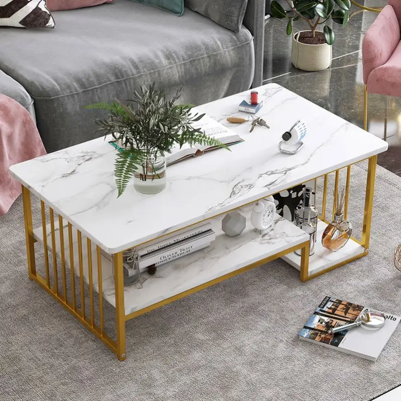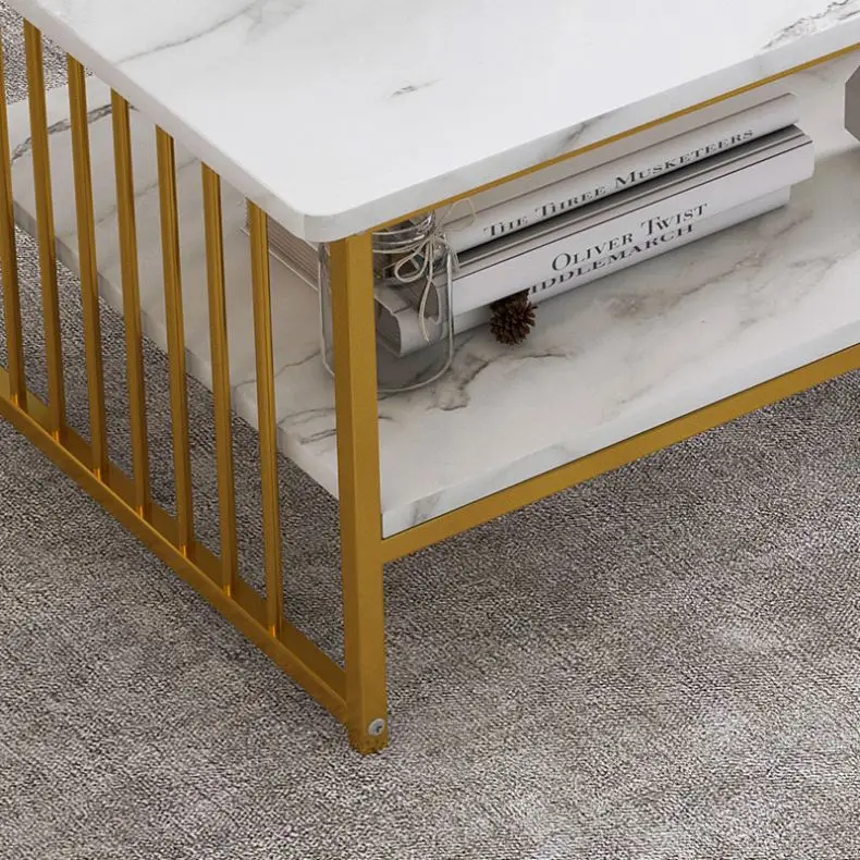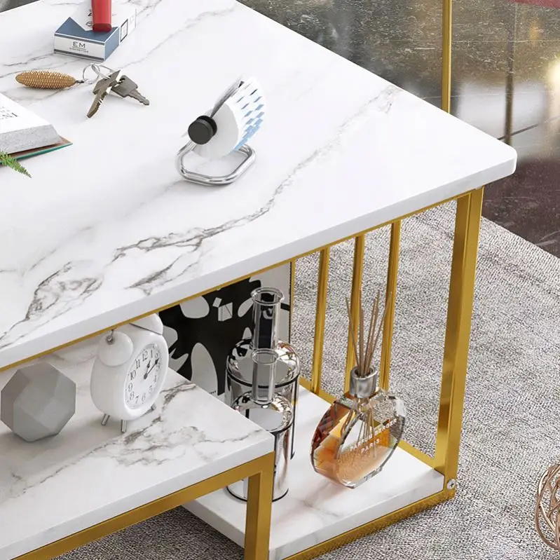 Modern double-layers coffee table gold legs centre tables with marble top for living room furniture
