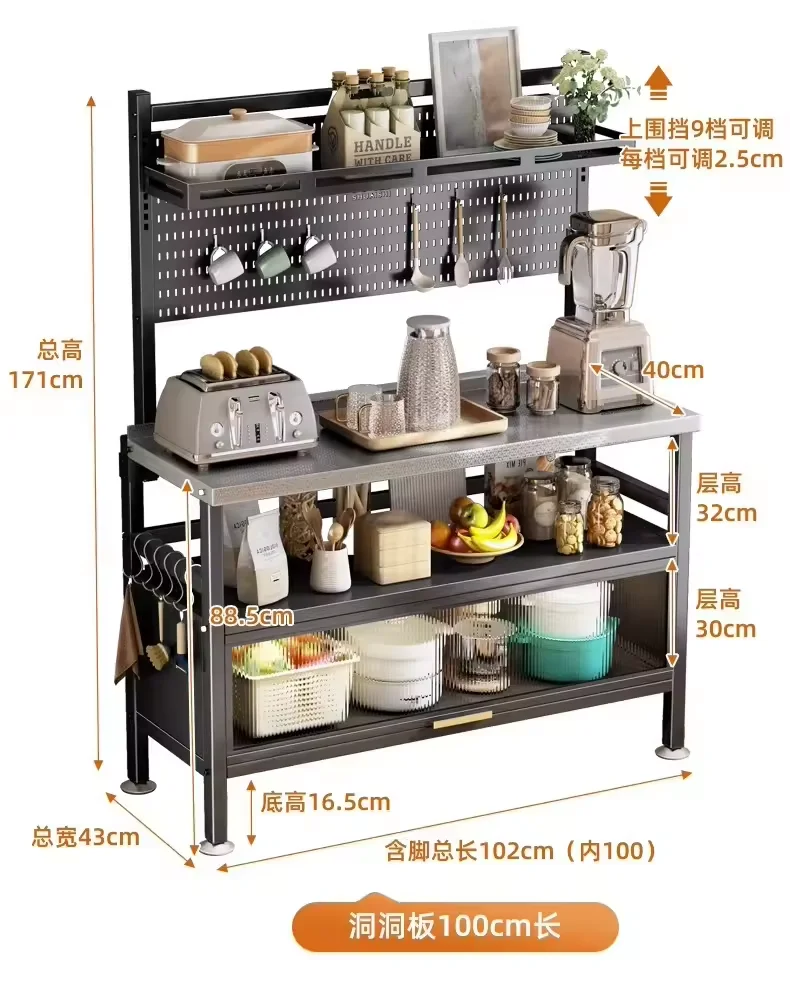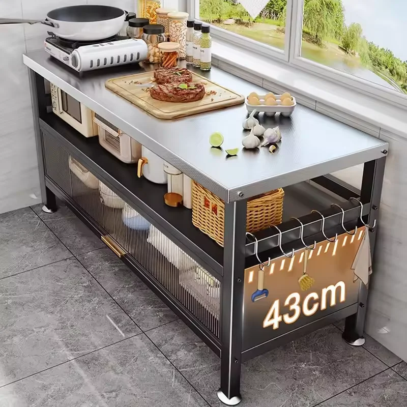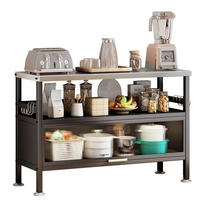 Kitchen floor multi-layer storage cabinet household pot with appliances storage flip cover with door daily necessities