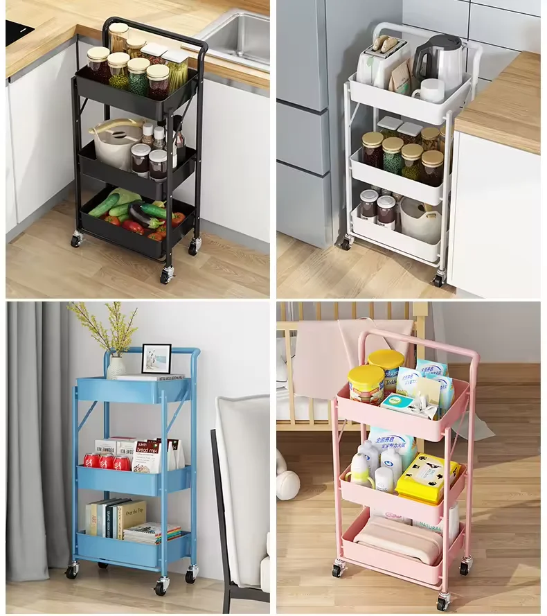 Hot selling 3-layer foldable kitchen practical vegetable multi-purpose folding storage rolling organizer pull rod rack