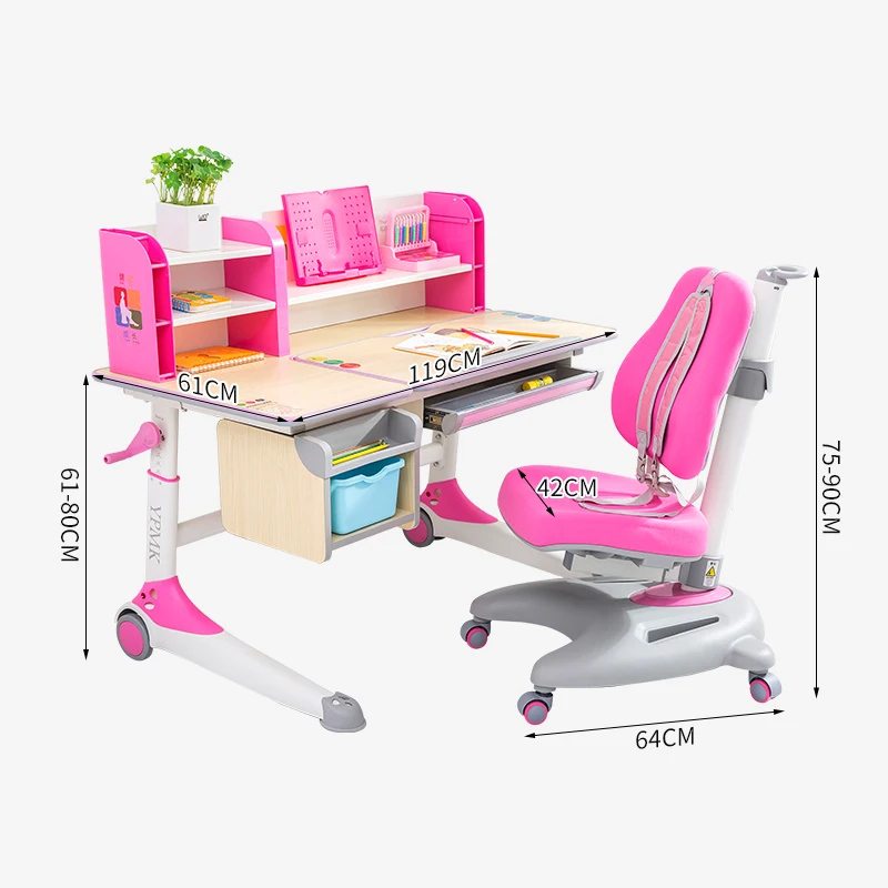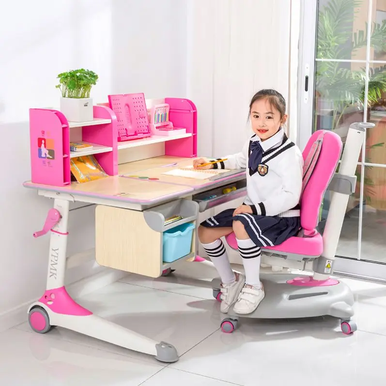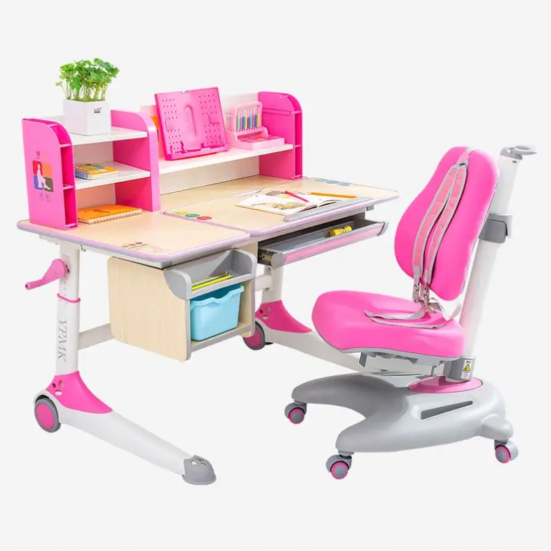 Kids Furniture Adjustable Study Desk, Children Furniture Sets Pink Color Study Desk And Chair Set/