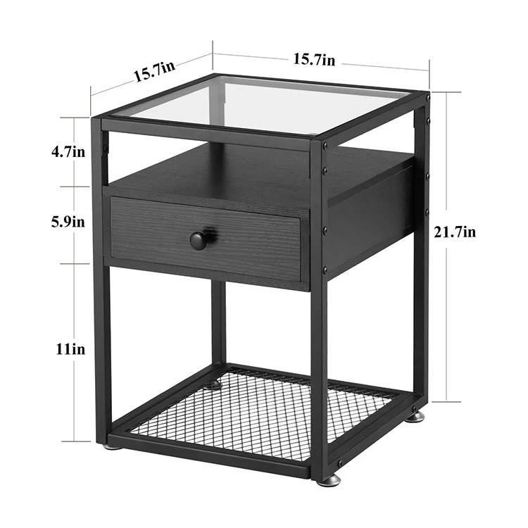 Wholesale China Modern Metal Nightstand Bedside Table With Drawer Simple Bedroom Black Night Stand