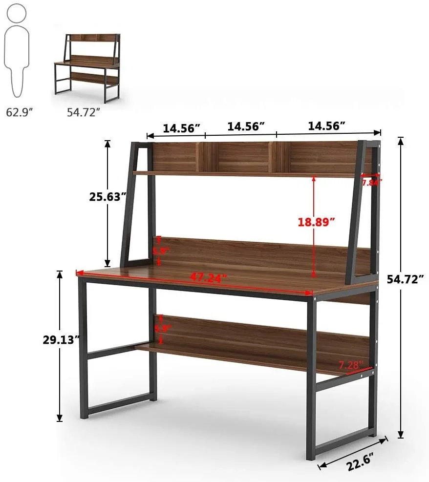 High-Quality Solid Wood Desktop Computer Office Table For Student With Bookcase