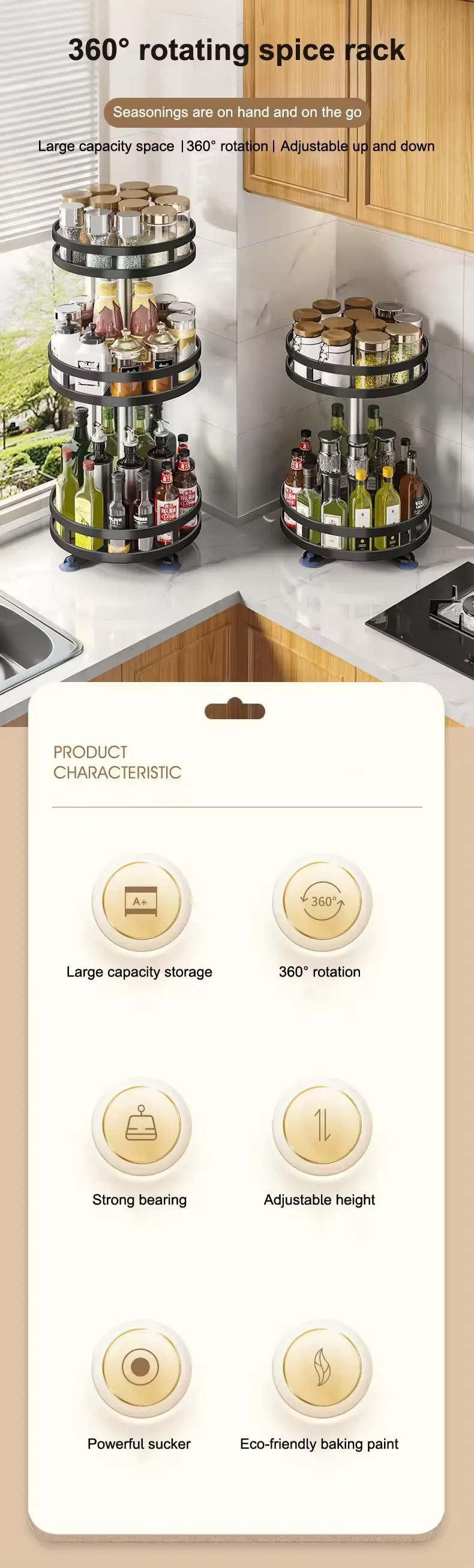 High quality multi-layer kitchen spice rack with 360 degree rotating disc for seasoning storage