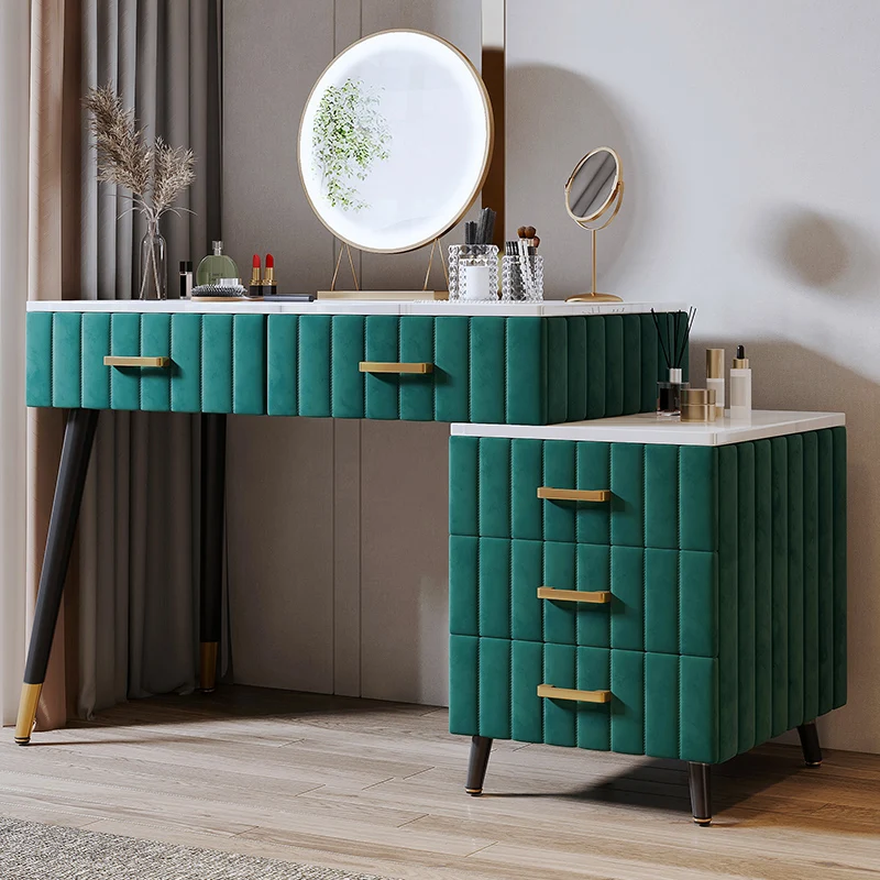 modern luxury bedroom vanity dressing table with gold legs dressers and nightstand set with storage drawers