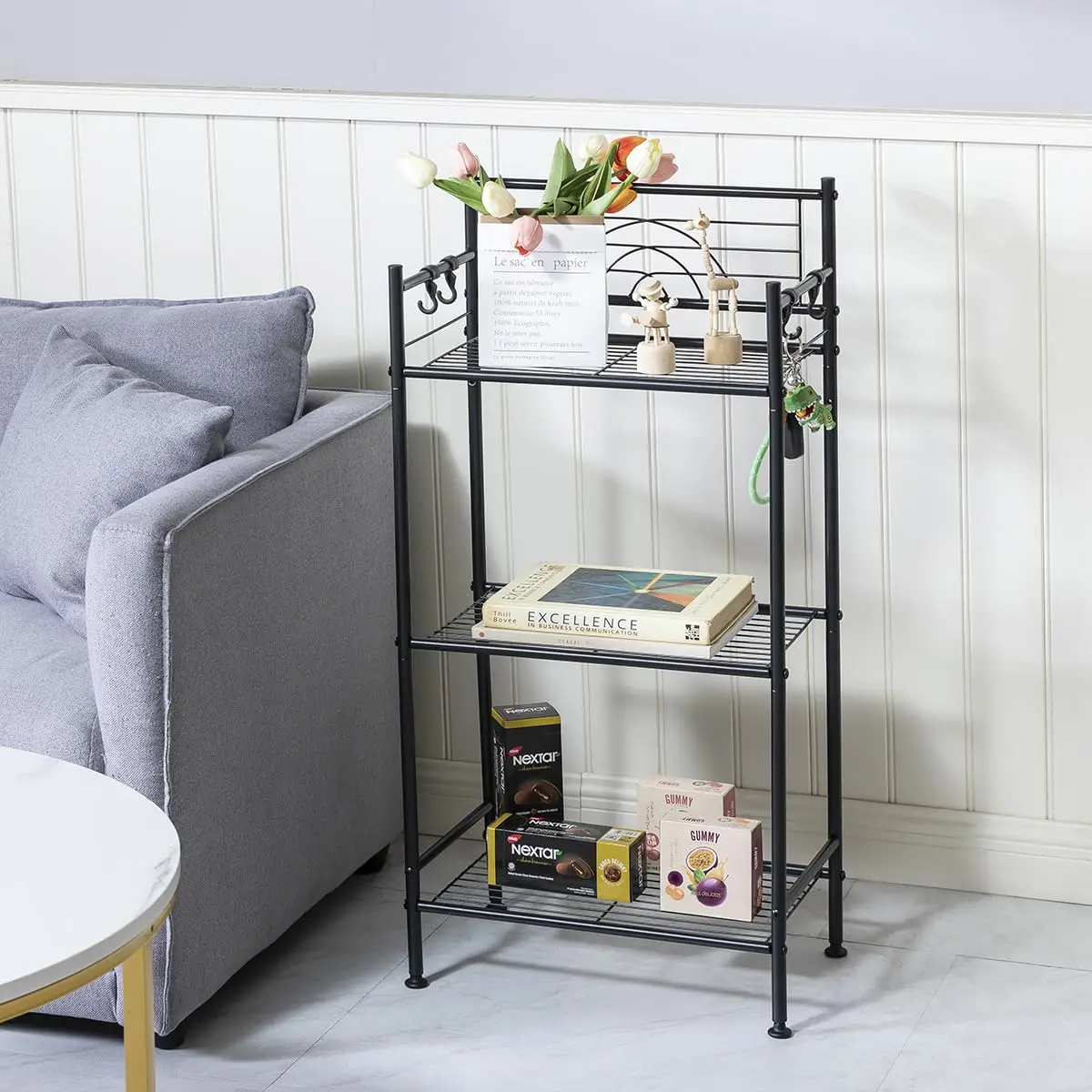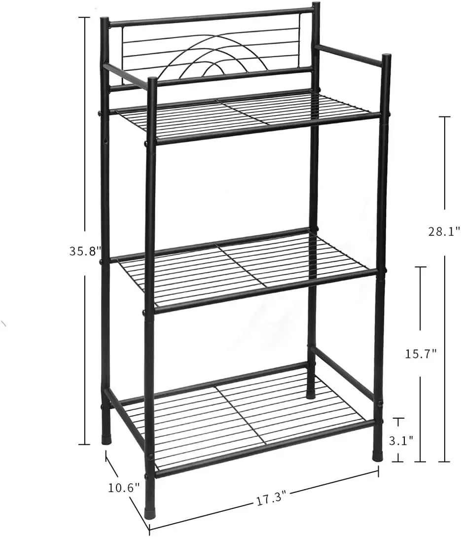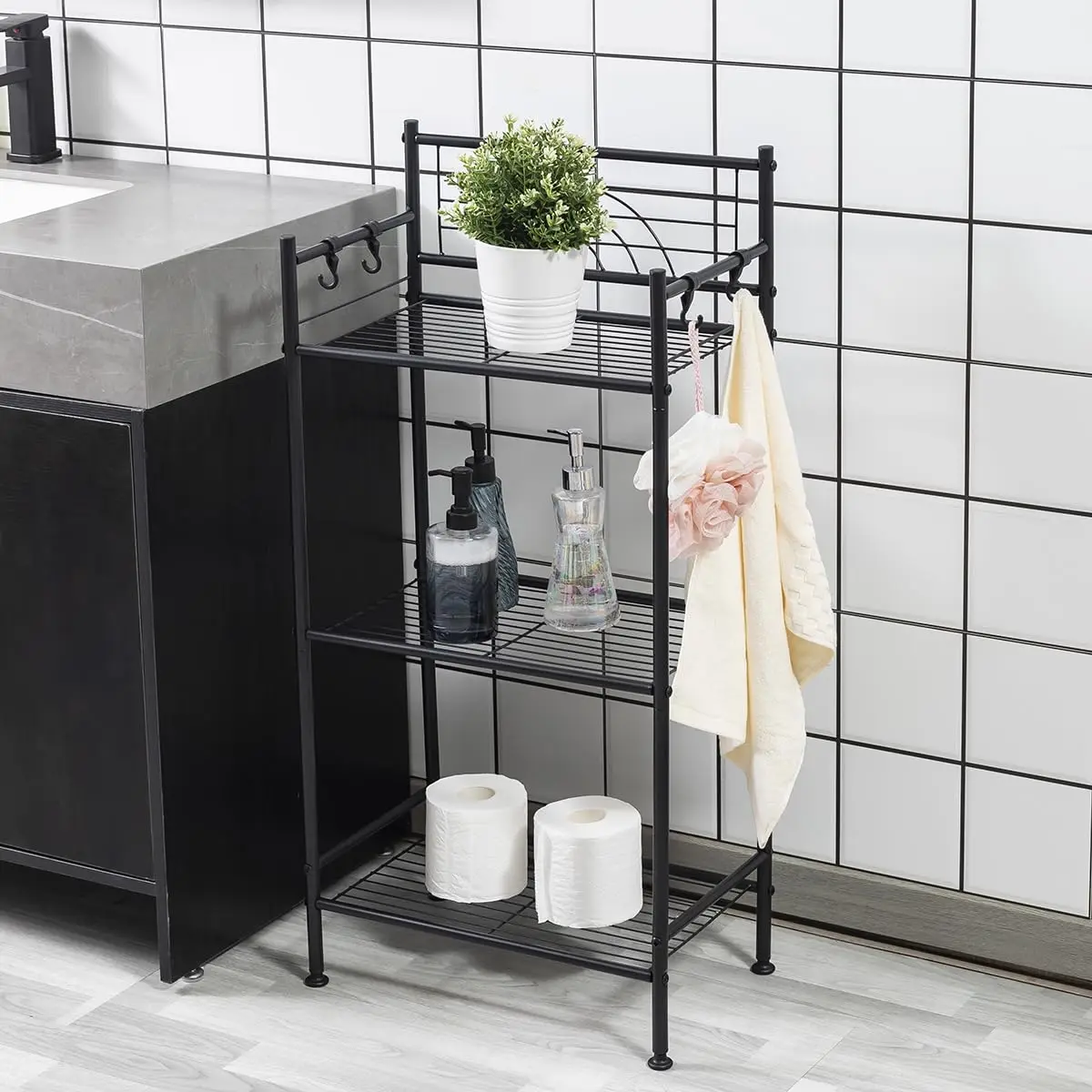 3-tier Free Standing Wire Rack Durable Metal Shelving Storage Unit With Adjustable Feet 4-hook For Bathroom Laundry Kitchen