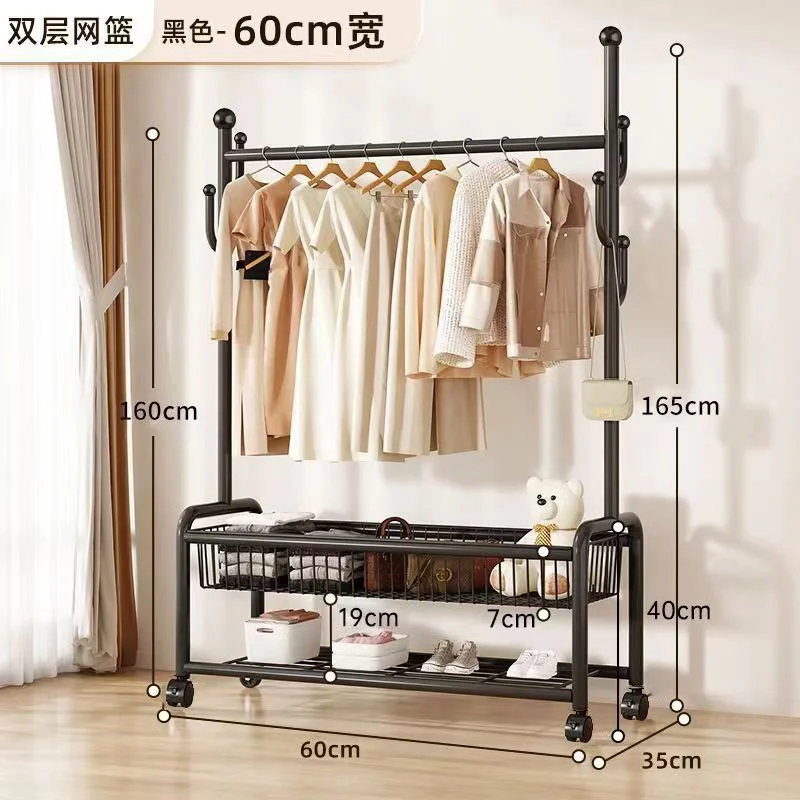Simple metal bracket detachable with wheels household bedroom storage hanger floor standing hanger