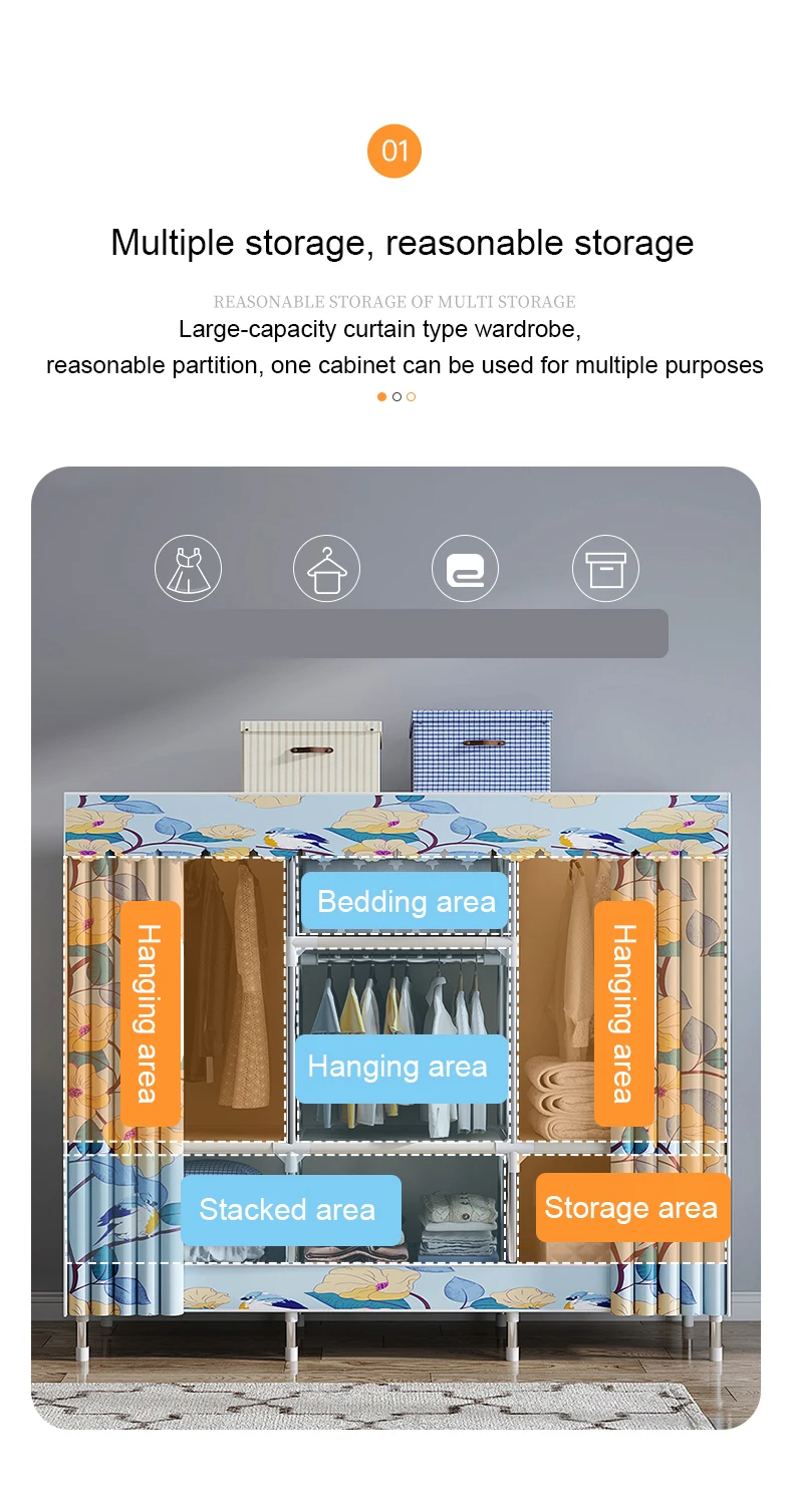 Customized color folding fabric wardrobe for bedroom portable wardrobe clothes storage