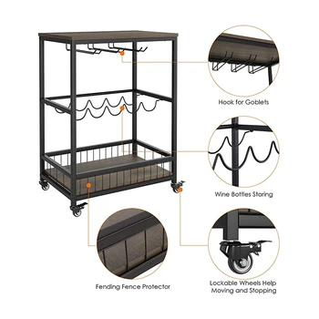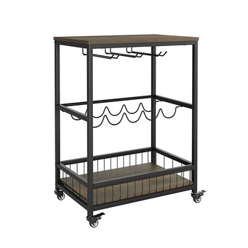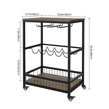 Nordic Rustic Wooden Display Useful Stand Black Wheel Glass Bottle Wooden Metal Wine Rack