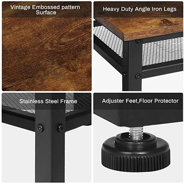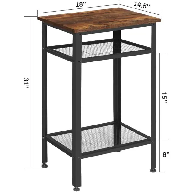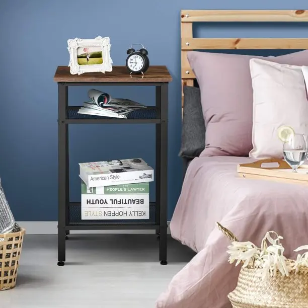 Three-layer Shelf Wooden Top Iron Foot Bedside Side Table
