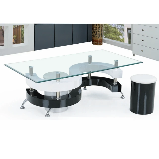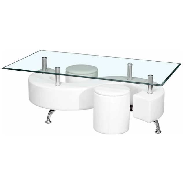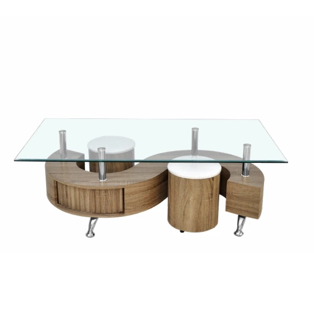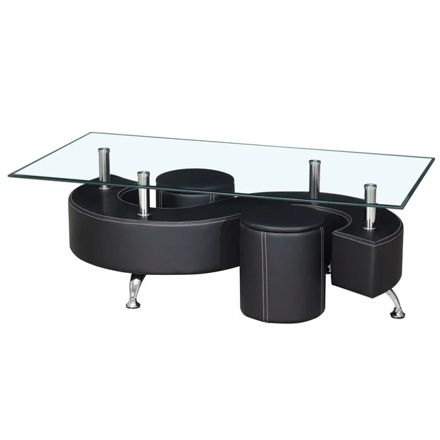 | Product Name | Wholesale contemporary S shaped MDF covered PU glass top coffee table with stools Bazhou Chinese supplier |