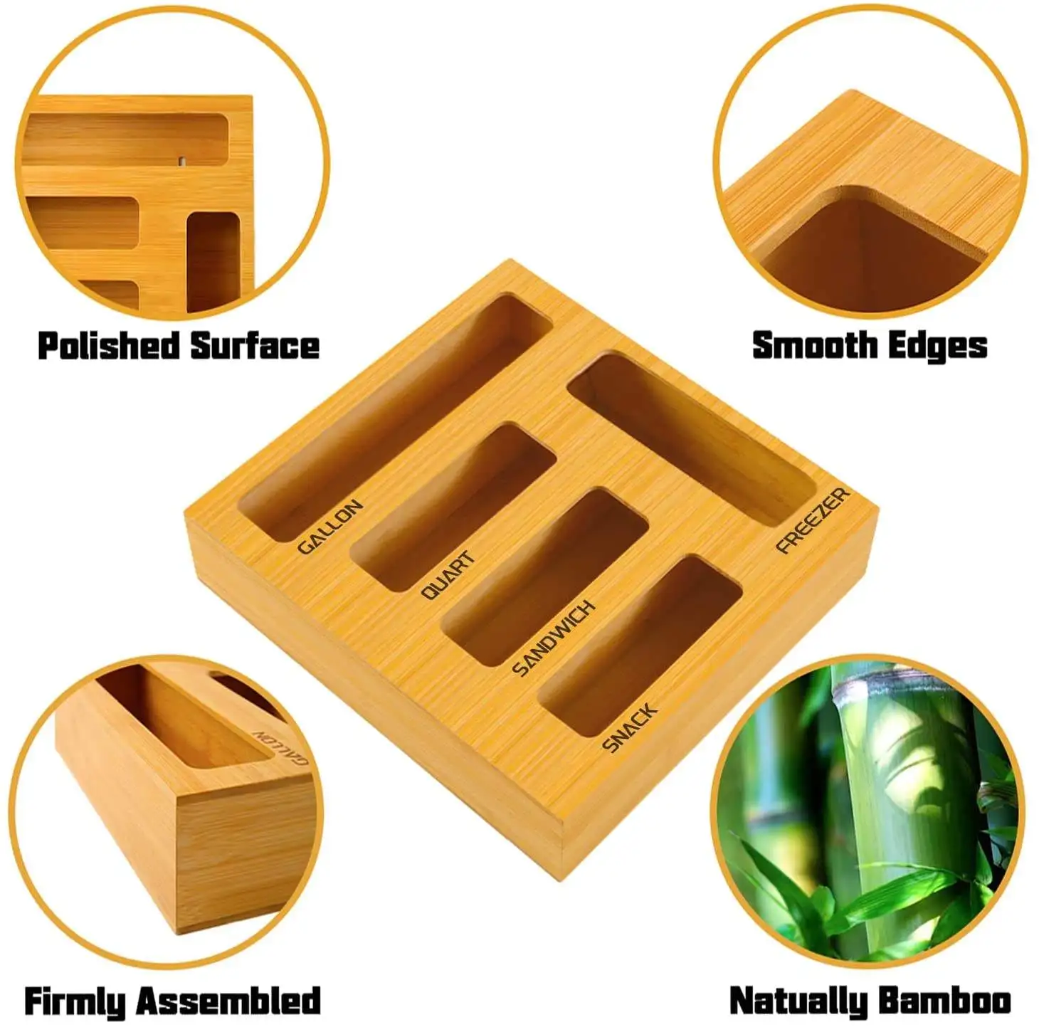 5 Compartments Kitchen Bamboo Wall Food Bag Wrap Drawer Bamboo Ziplock Bag Storage Organizer For Drawer