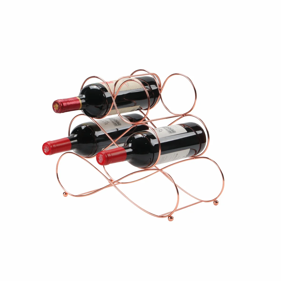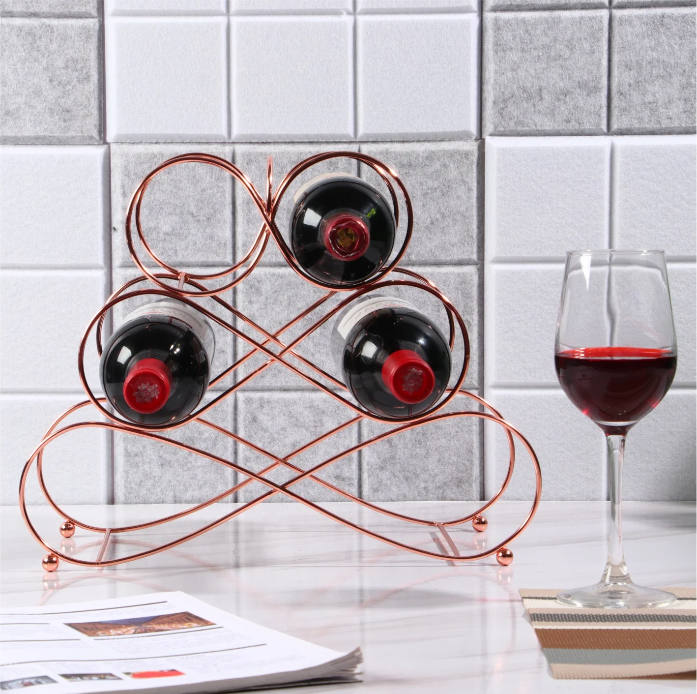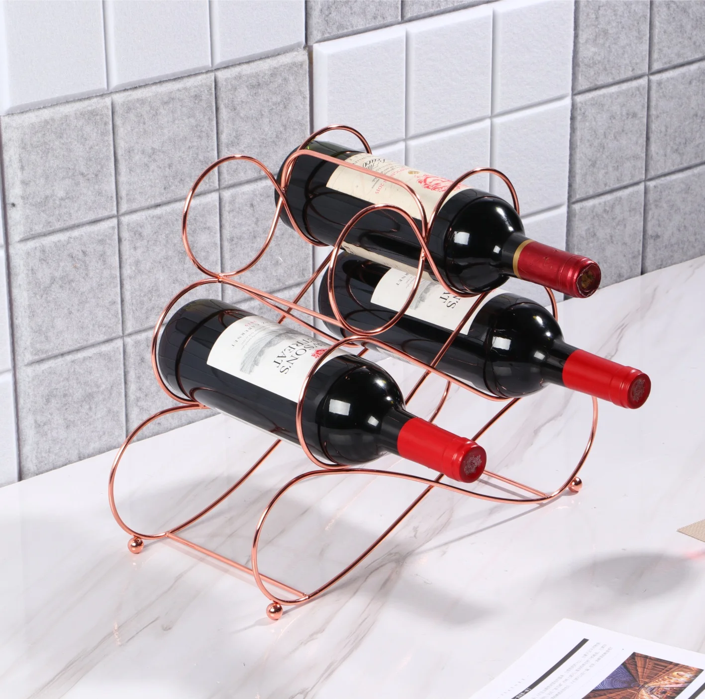 Modern Decorative Iron Rose Gold Color Kitchen Living Room Tabletop Small Wine Rack
