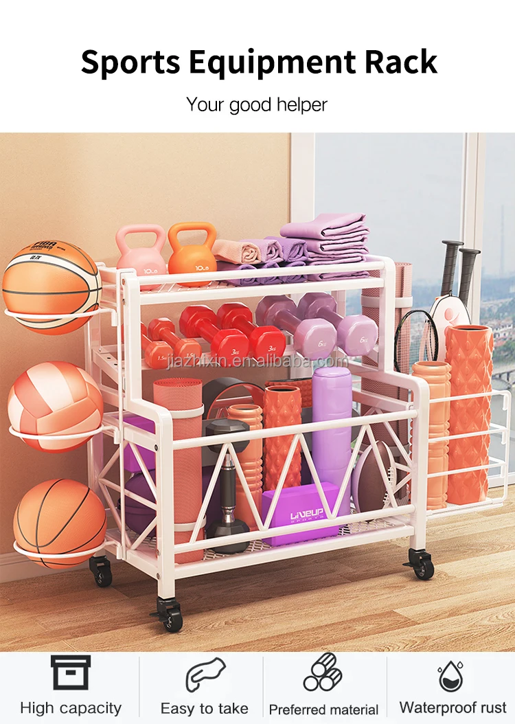 Household sports equipment removable yoga mat basket indoor dumbbell fitness supplies simple metal basketball storage rack