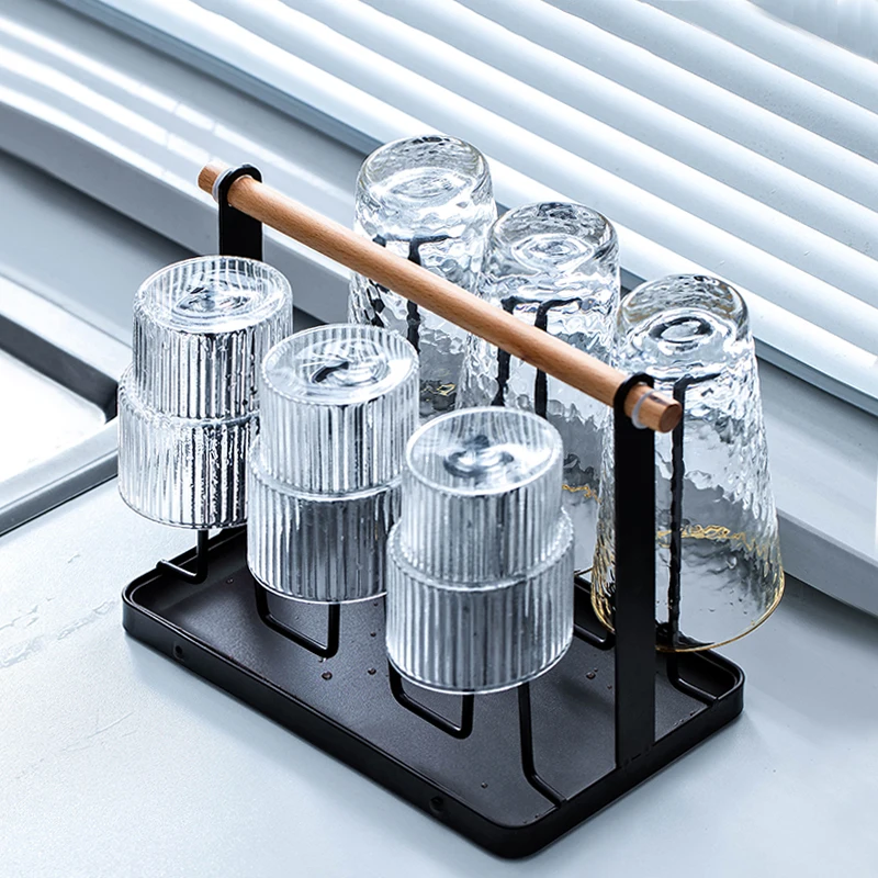 Bottle Drying Rack Metal 6 Cup Mug Wine Glass Holder Silicone Protective Hooks Non-slip Bottle Drying Holder