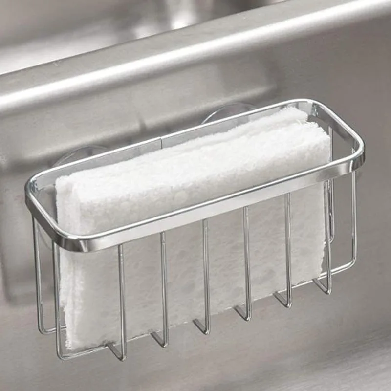 Wall Adhesive Hook Stainless Steel Rust Proof Kitchen Sink Organizer Caddy Sponge Holder, Sponge Holder For Kitchen Sink