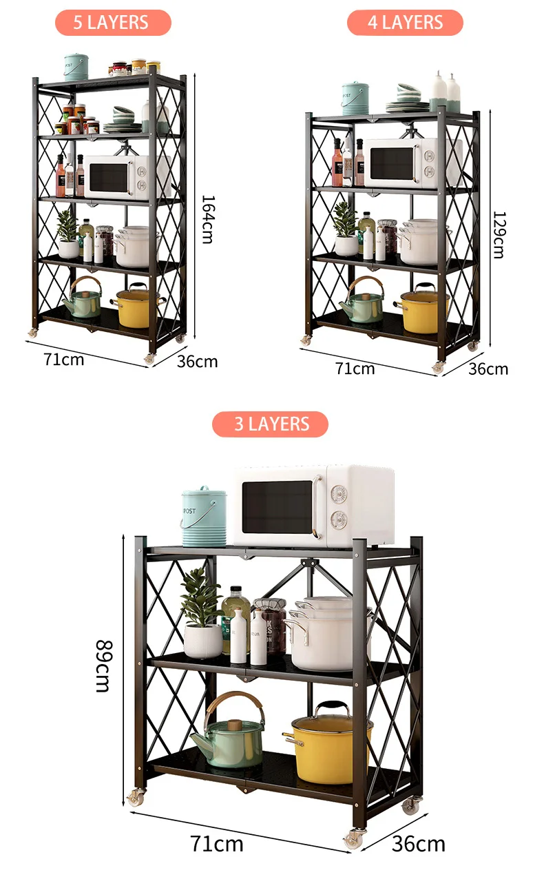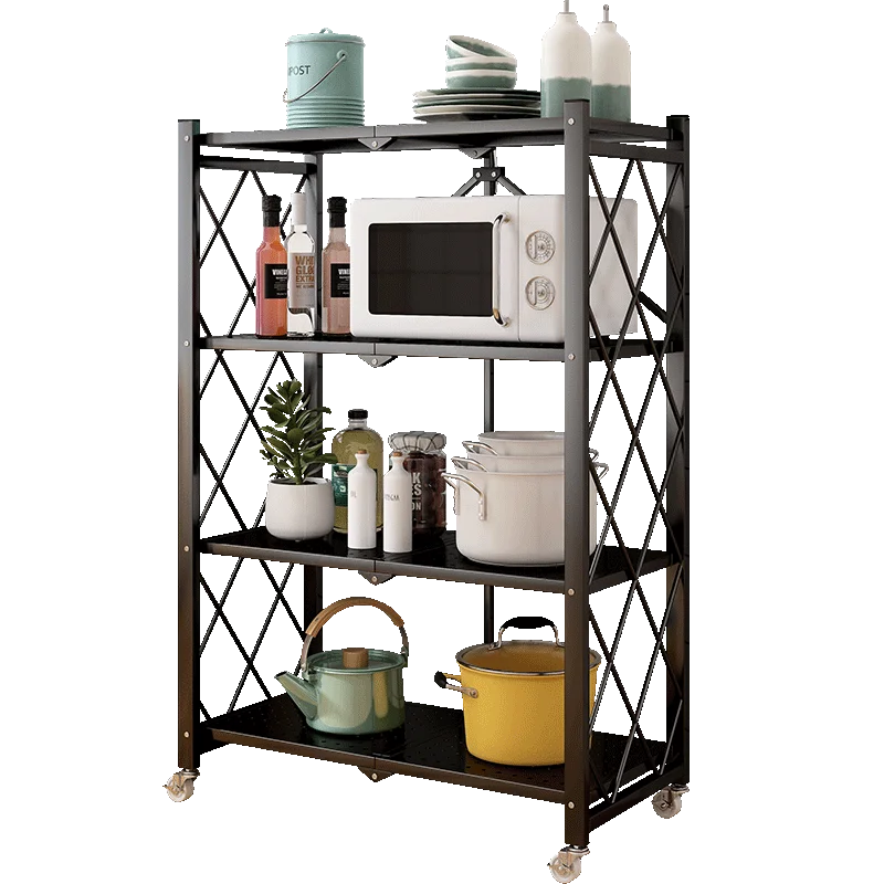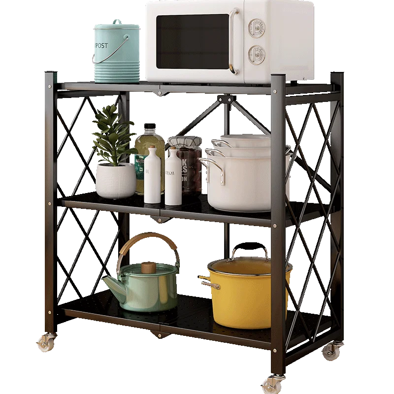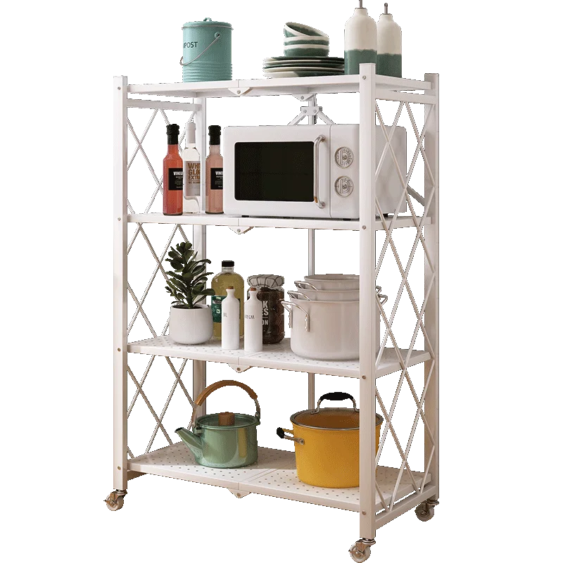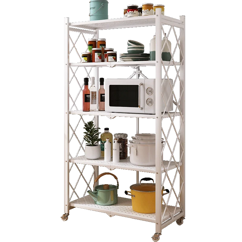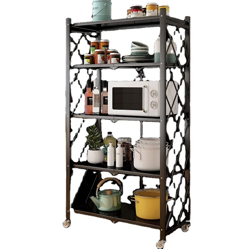 Movable Folding Kitchen Shelves Multi-layer Storage Shelves