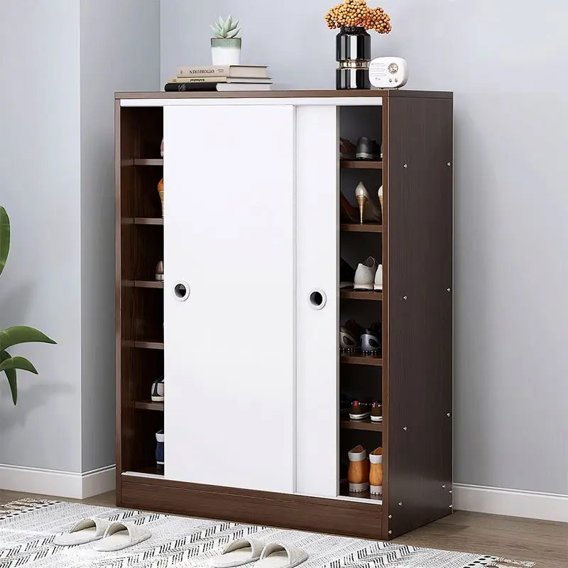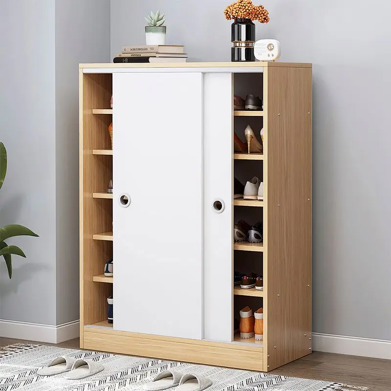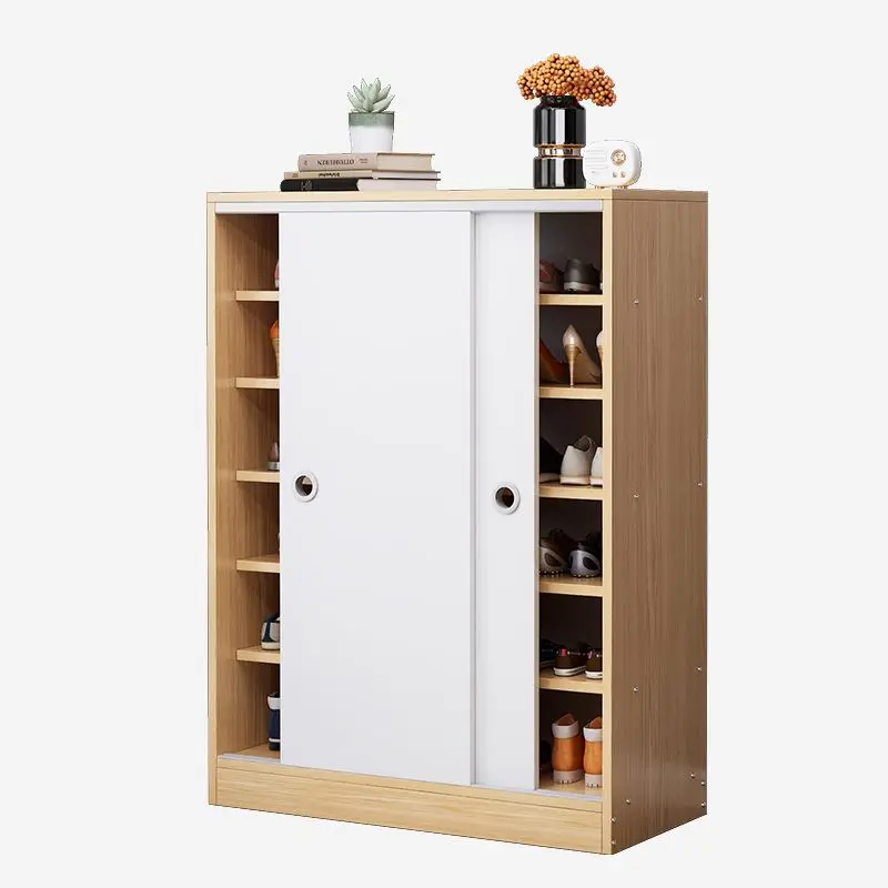 Nordic sliding door mdf shoe cabinet wooden rack for home living room