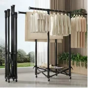 Double pole drying rack wholesale compact laundry rack with casters heavy-duty foldable drying rack