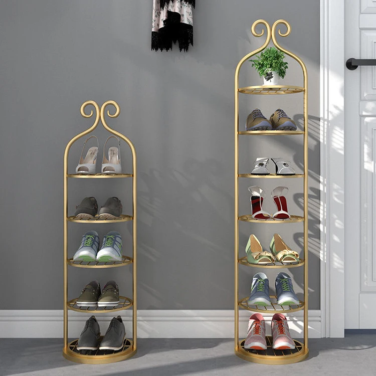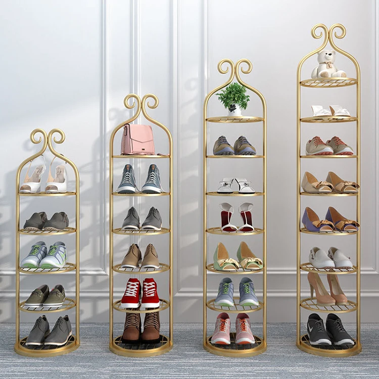 Custom Multifunctional Modern Trending Round Storage Metal Gold Shoes Rack Wholesale, Shoes Shelf For Home