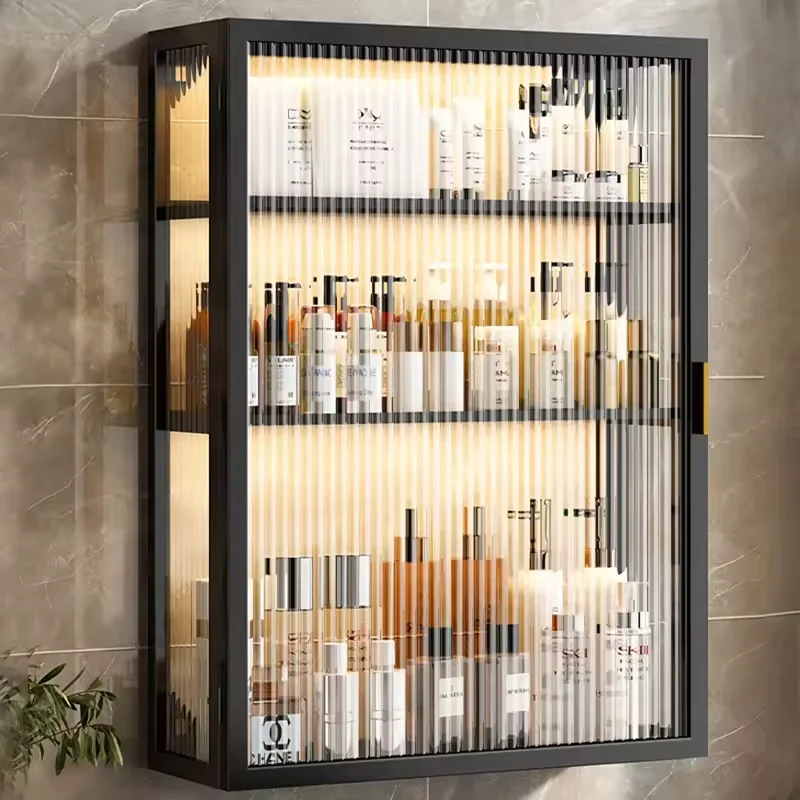 Perforated bathroom wall mounted washbasin storage rack bathroom cosmetic dressing storage cabinet