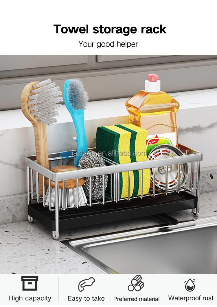 ZX kitchen telescopic sink shelf 304 stainless steel drain rack holder sponge soap rag storage holders