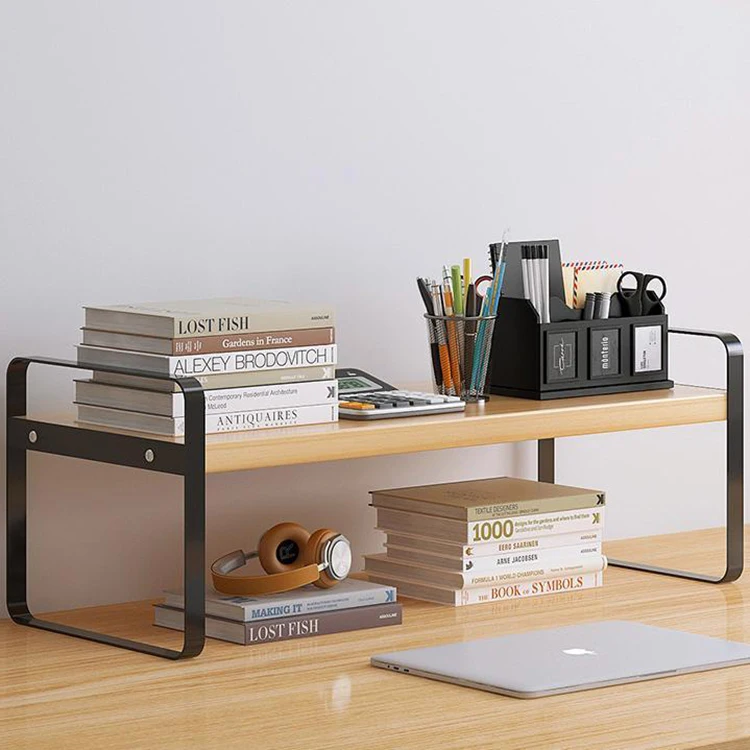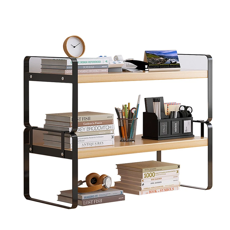 Adjustable Small Metal Wooden Desktop Organizer Storage Bookshelf, Desktop Book Shelf Storage Rack