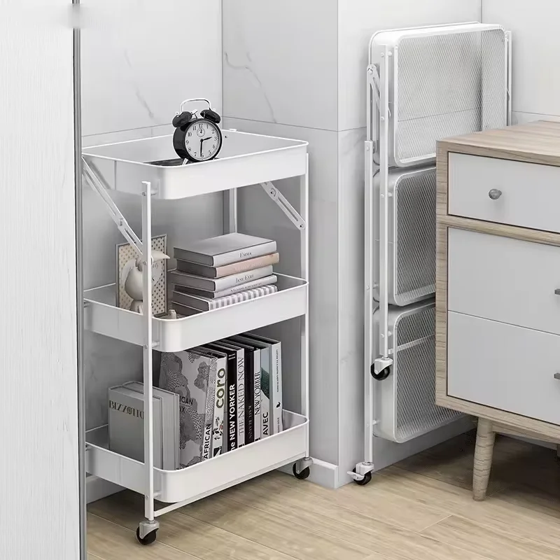3-layer metal folding storage rack metal storage household kitchen shelf with rotating wheels