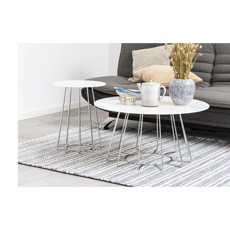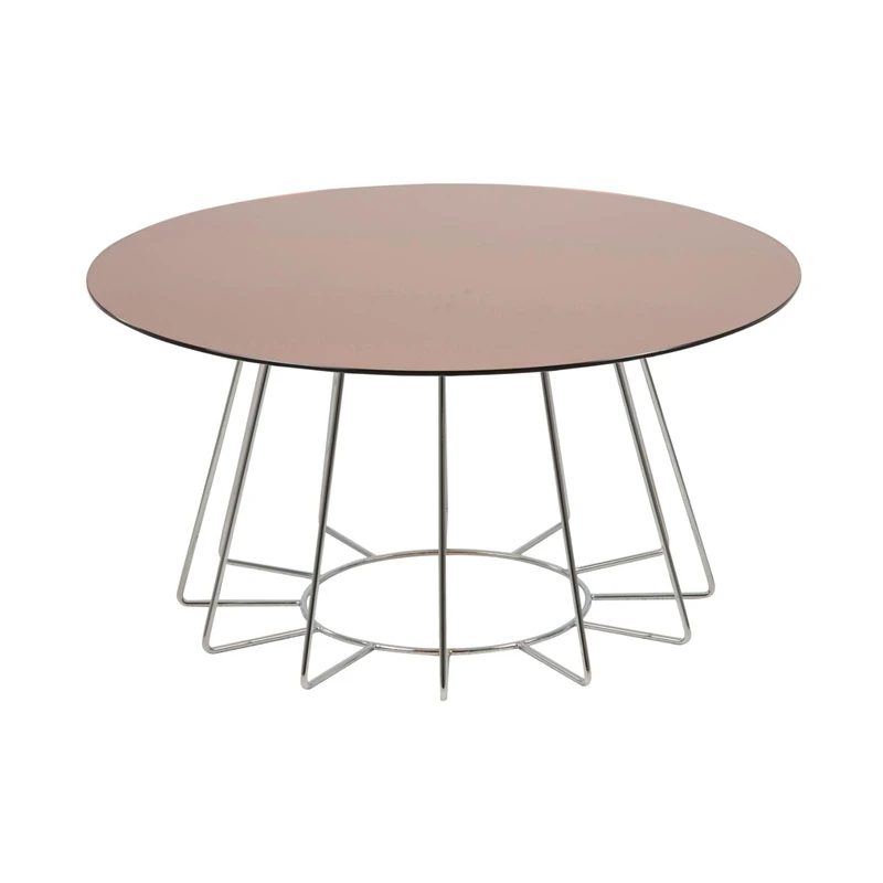 New Design Round Shape Glass Painting Top Coffee Table With Metal Tube