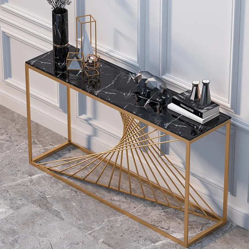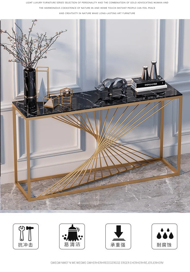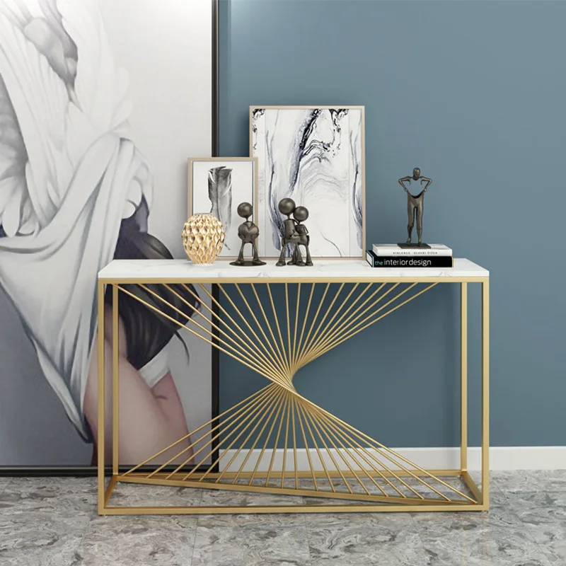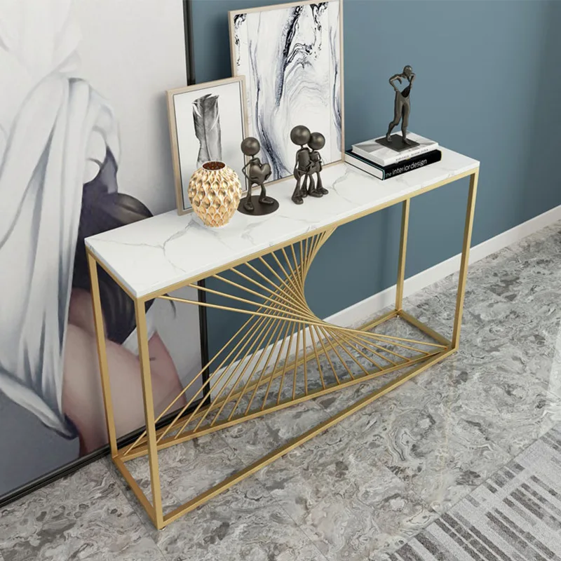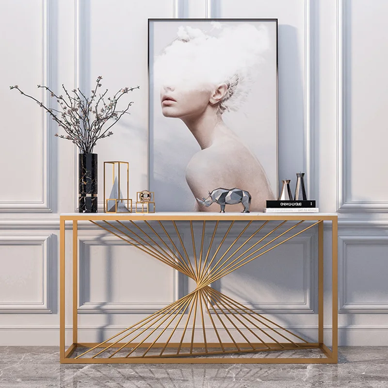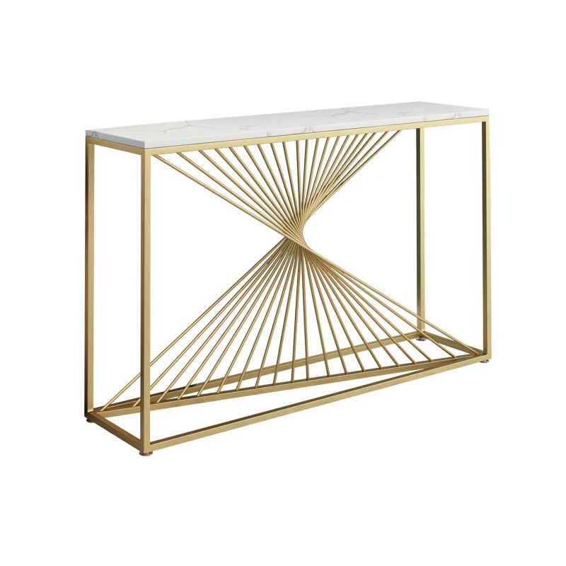 China Elegant Decoration White Gold Slim Console Table For Modern Office