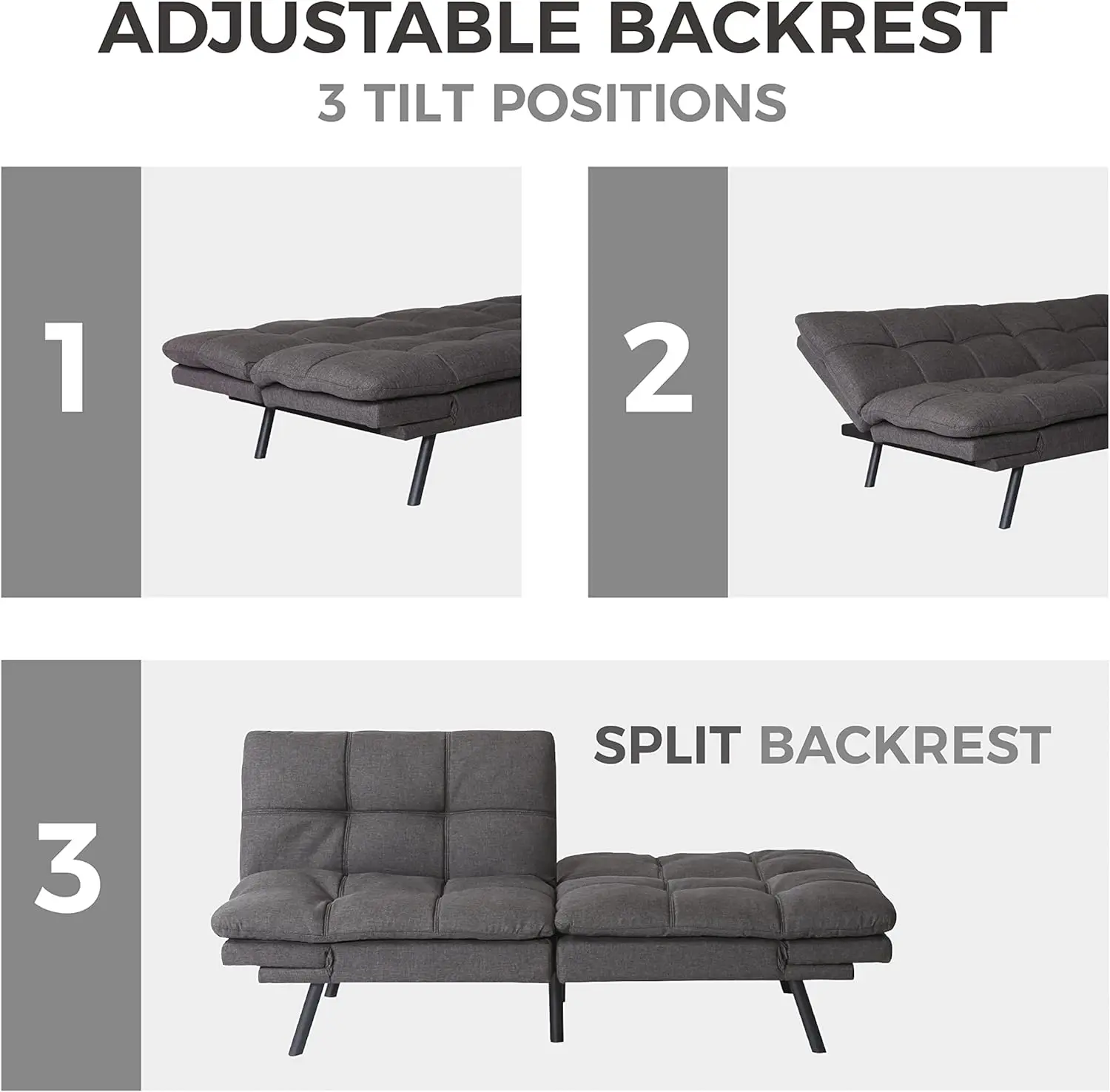 Split Reversible Lazy Futon Loveseat Fabric Sleeper Sofa Bed For Office Living Room 3 Angles Adjustable Convertible Sofa Cum Bed