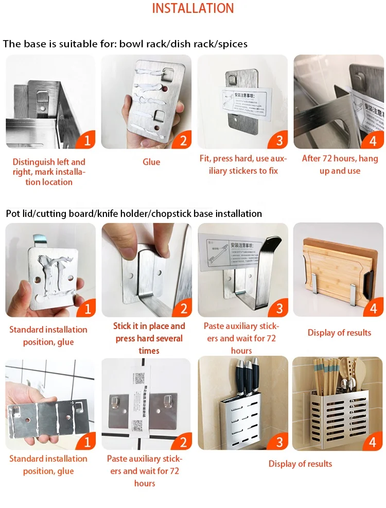 Item size(CM) | Bowl rack: 44*14*6.5CM Disc rack: 43*14*6.5CM Seasoning rack: 43*14*6.5CM Binocular chopsticks cage: 15*4.8*12.5CM Single-cylinder chopsticks cage: 7.6*4.8*12.5CM Tool holder: 19*2*20CM U-shaped frame: 1.8*5.5*5.5CM | |
