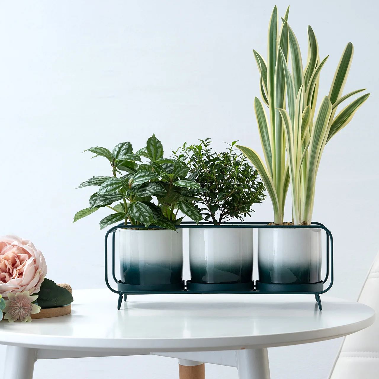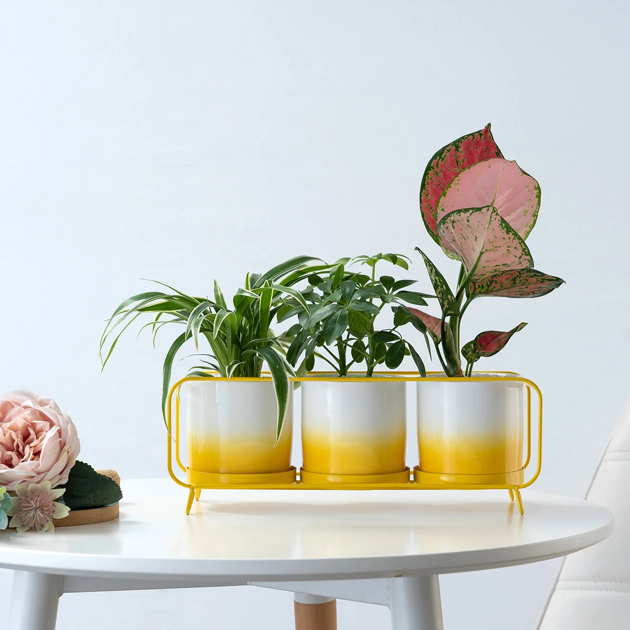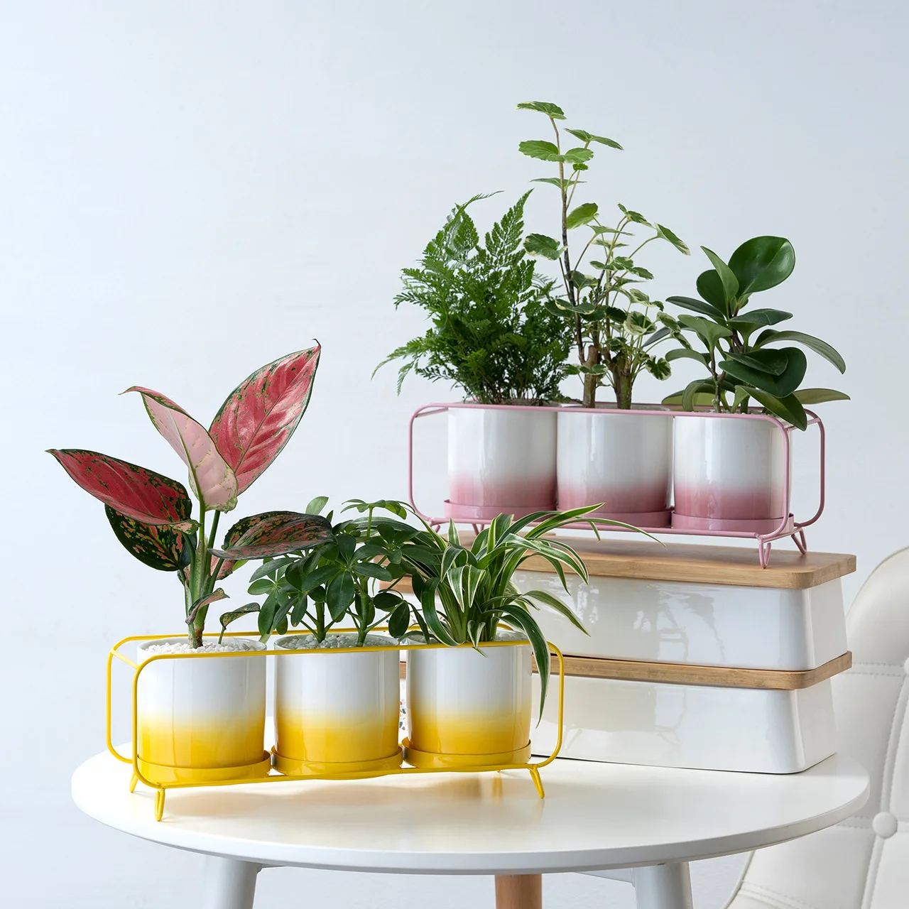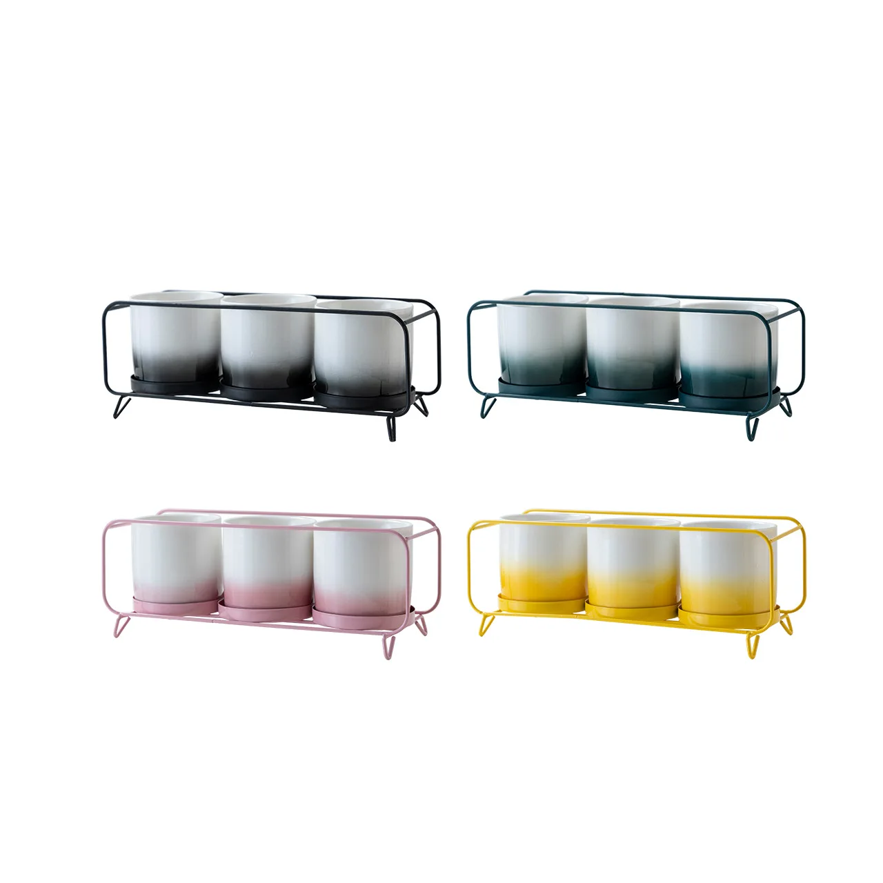 New Simple Gradient Color Combination Set Three Round Iron Ceramic Flowerpot Factory Wholesale