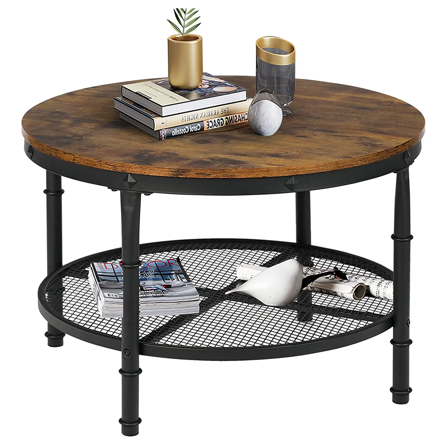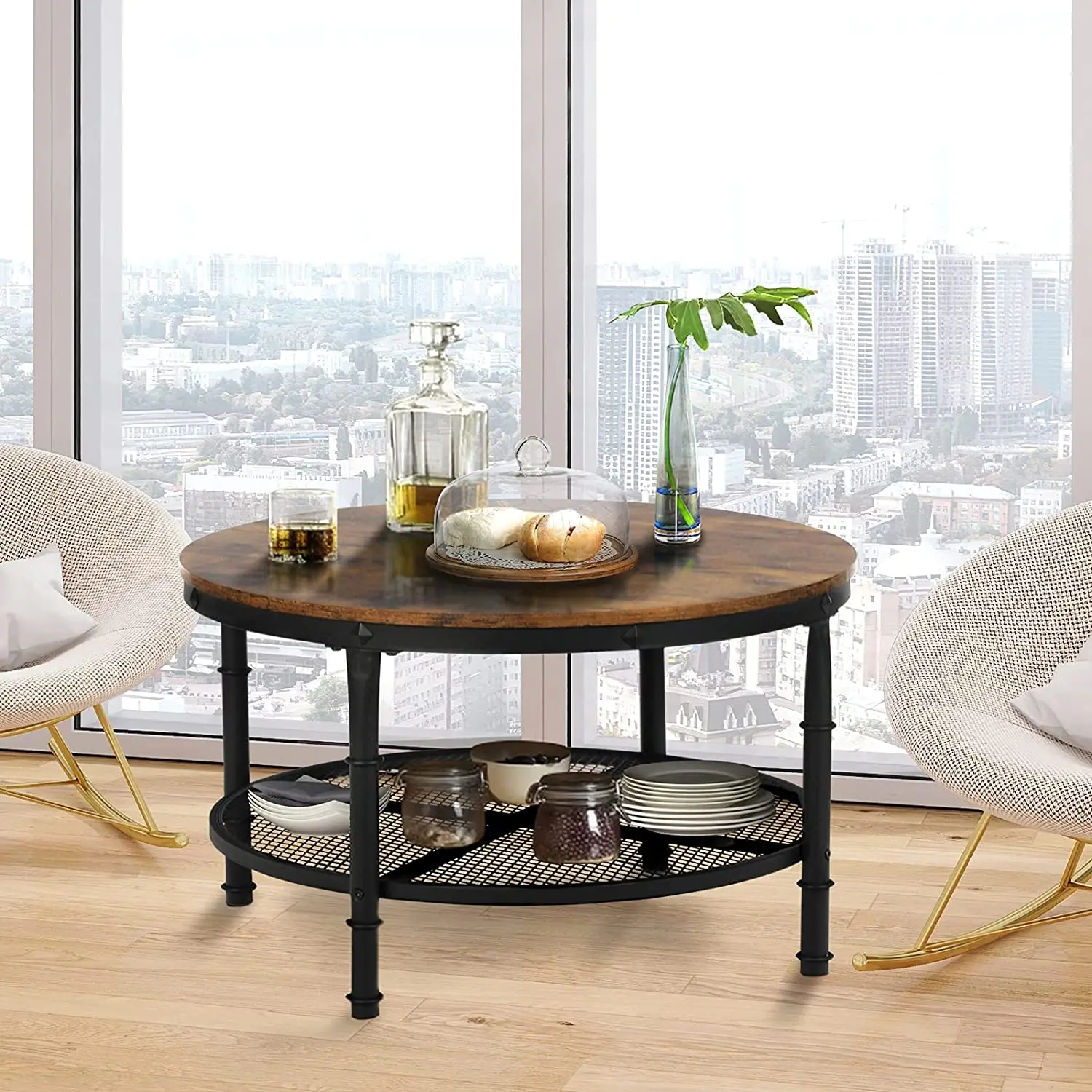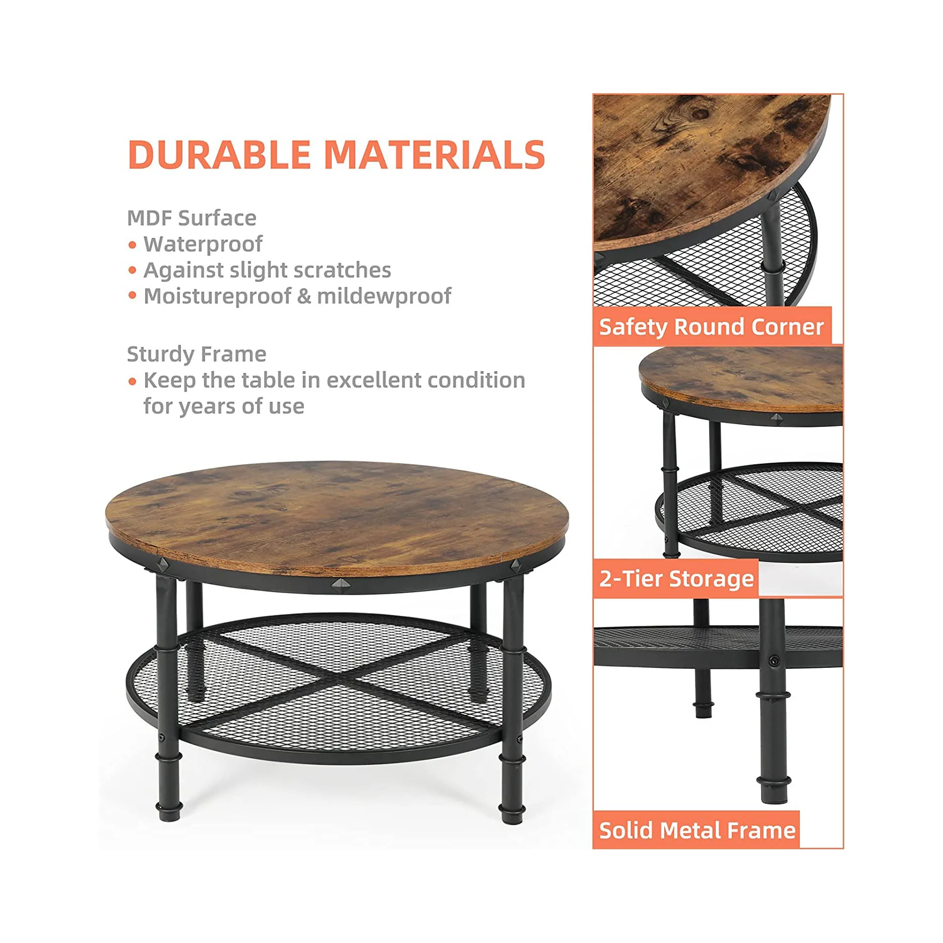 Manufacturer Antique Round Wooden Rustic Center Coffee Table For Living Room And Kitchen With Storage