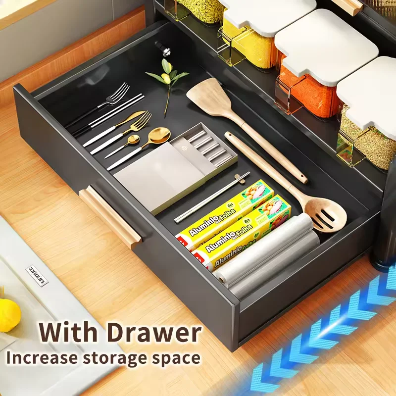 Cabinet drawer spice rack saves space, multi-layer kitchen tools and supplies storage seasoning rack organizer with door