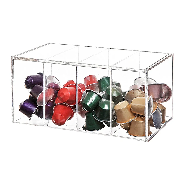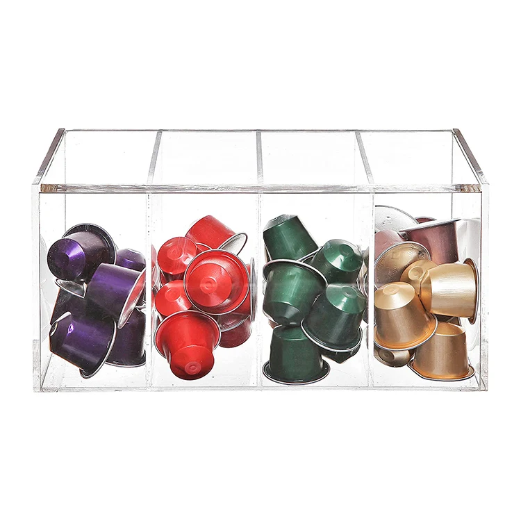Standing Clear Acrylic 4 Compartment Hinge Lid Coffee Capsule Holder