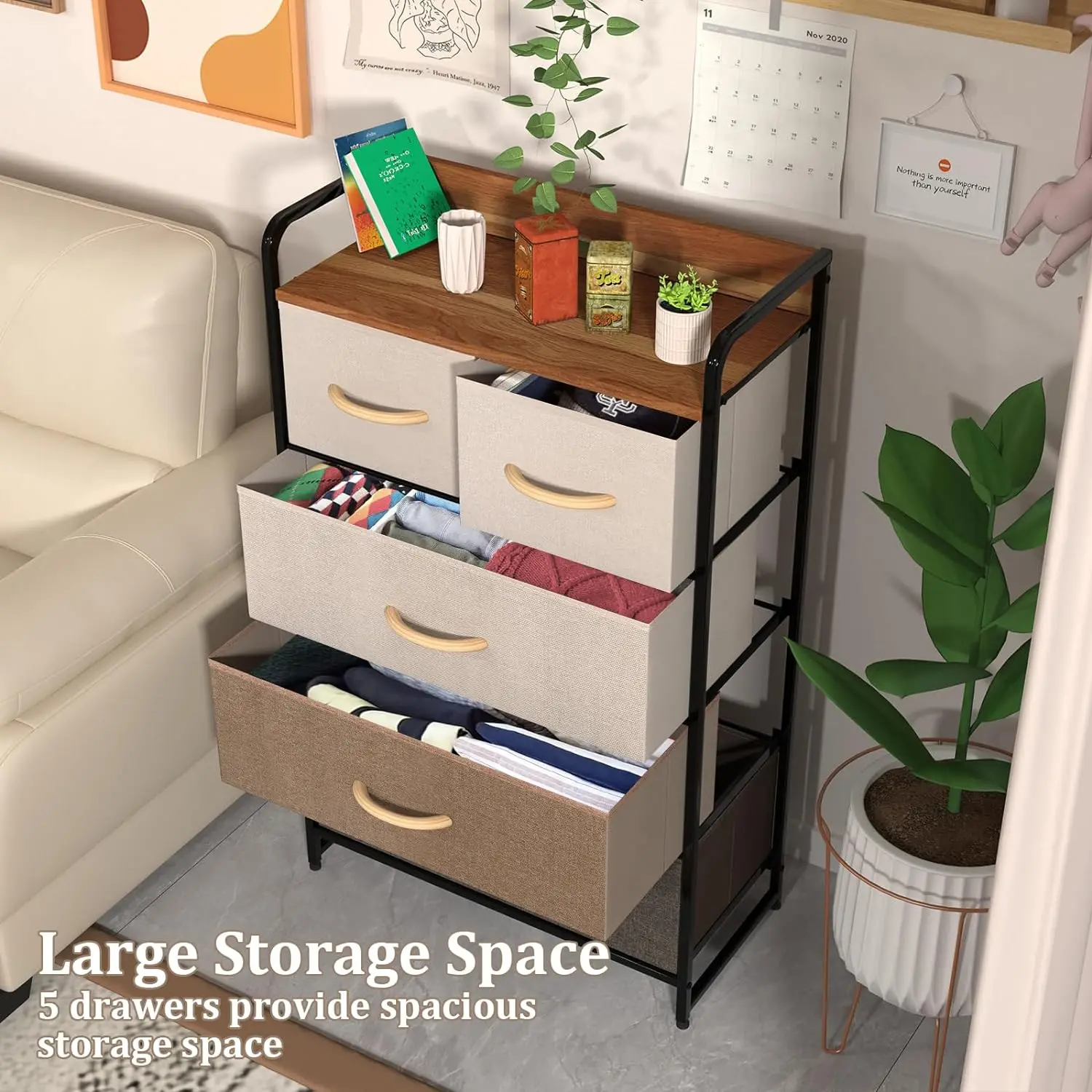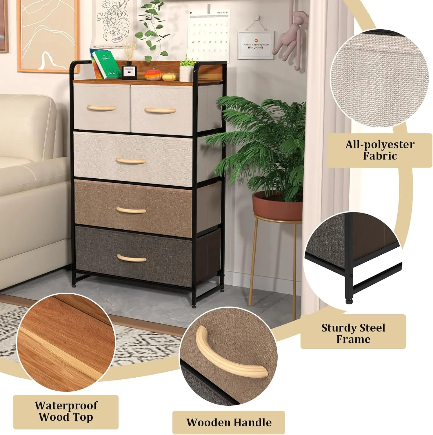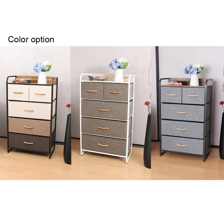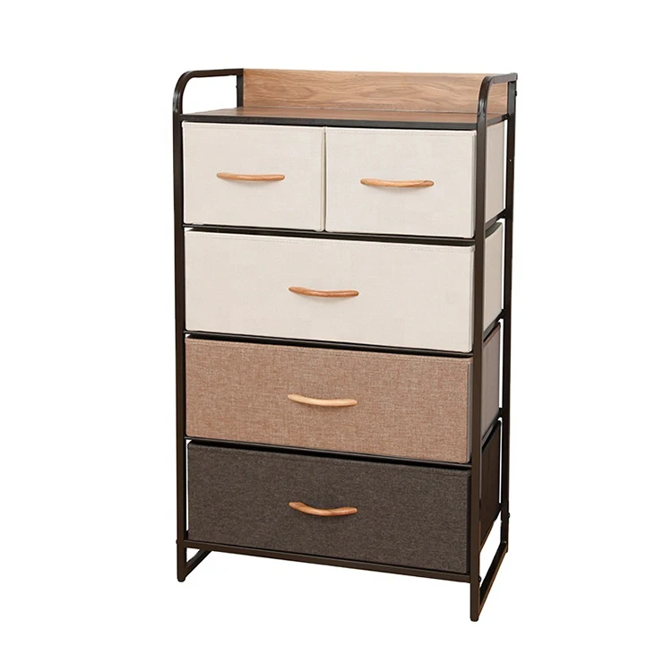Clothes 5 Drawer Living Room Iron Frame Non Woven Cloth Fabric Storage Cabinet