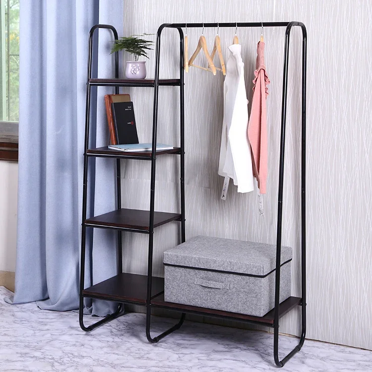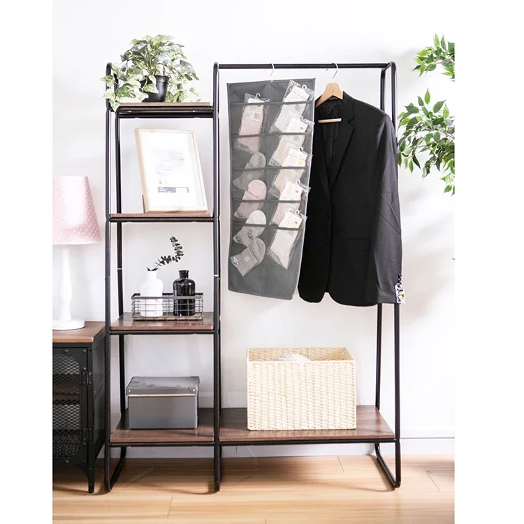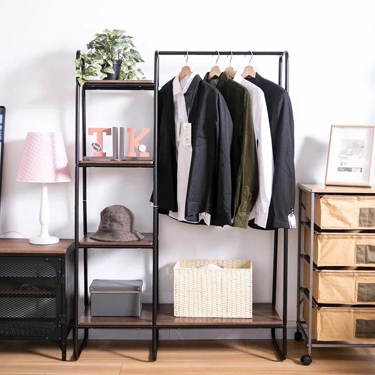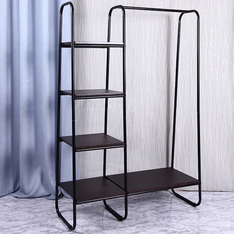 Bedroom Furniture Black Modern Floor Elegant Hanging Shelf Cast Iron Teak Coat Rack, Clothes Coat Hanger Stand